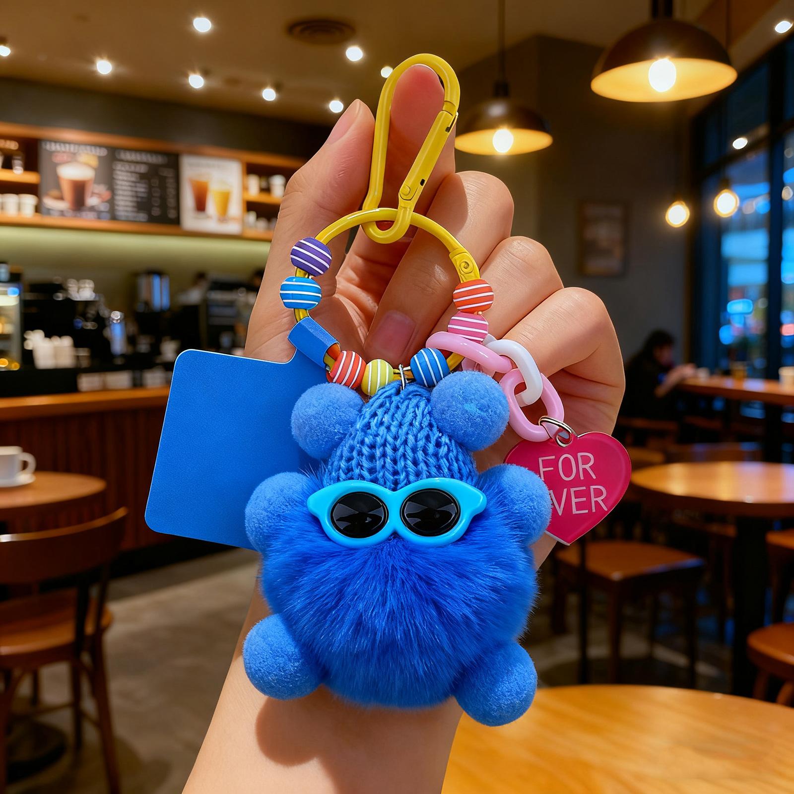 Cute Coal Ball Keychain - Fluffy Phone Charm, Light Blue