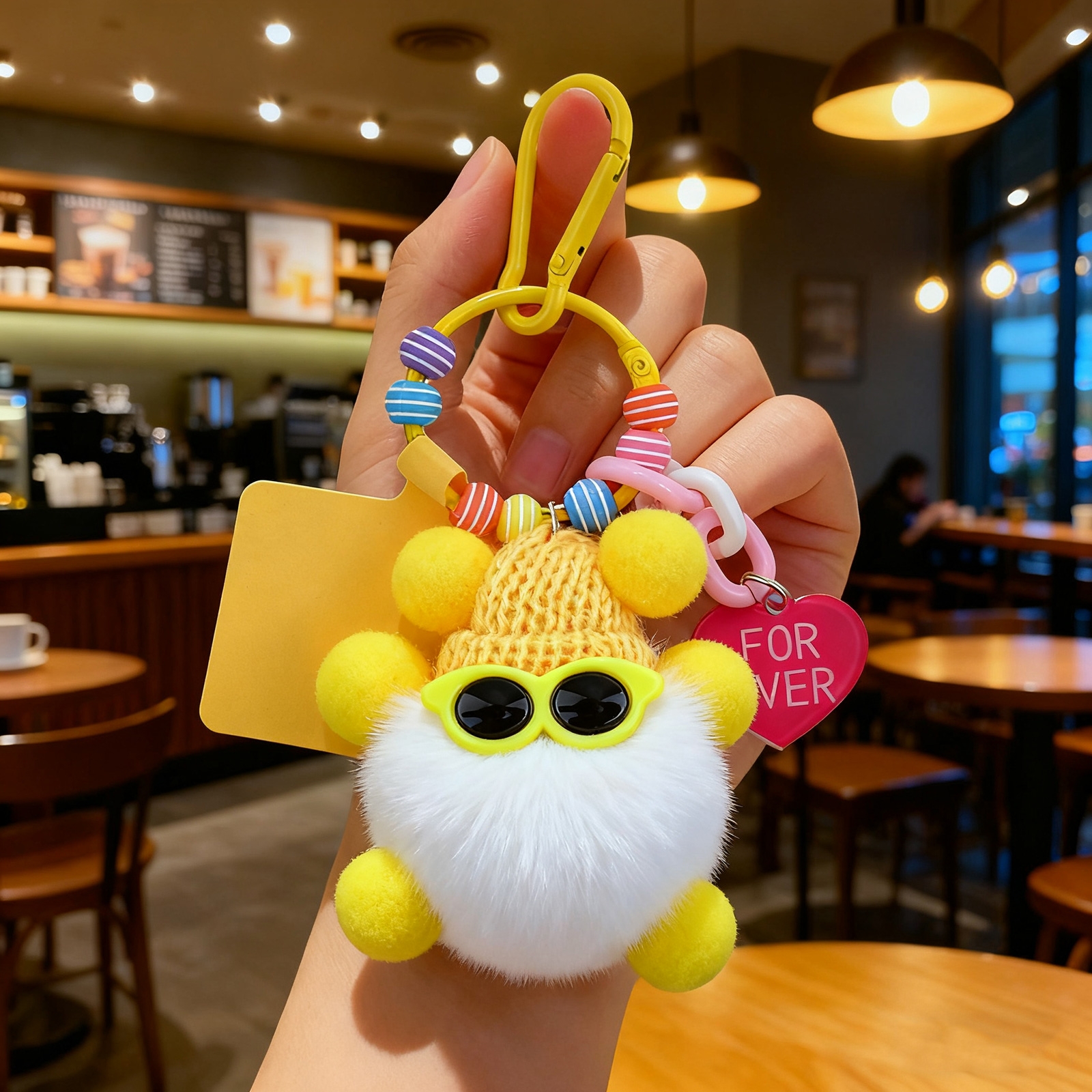 Cute Coal Ball Keychain - Fluffy Phone Charm, Yellow