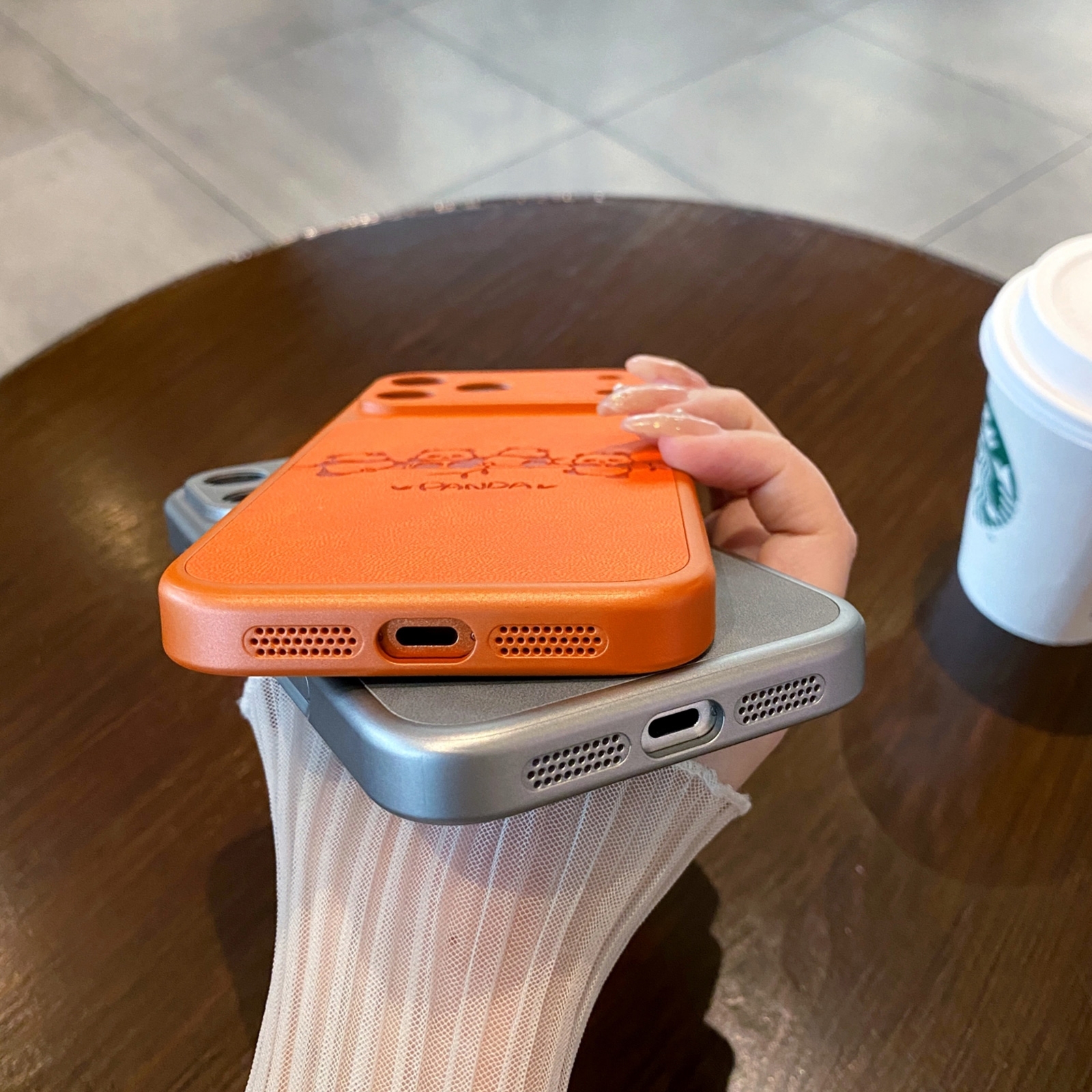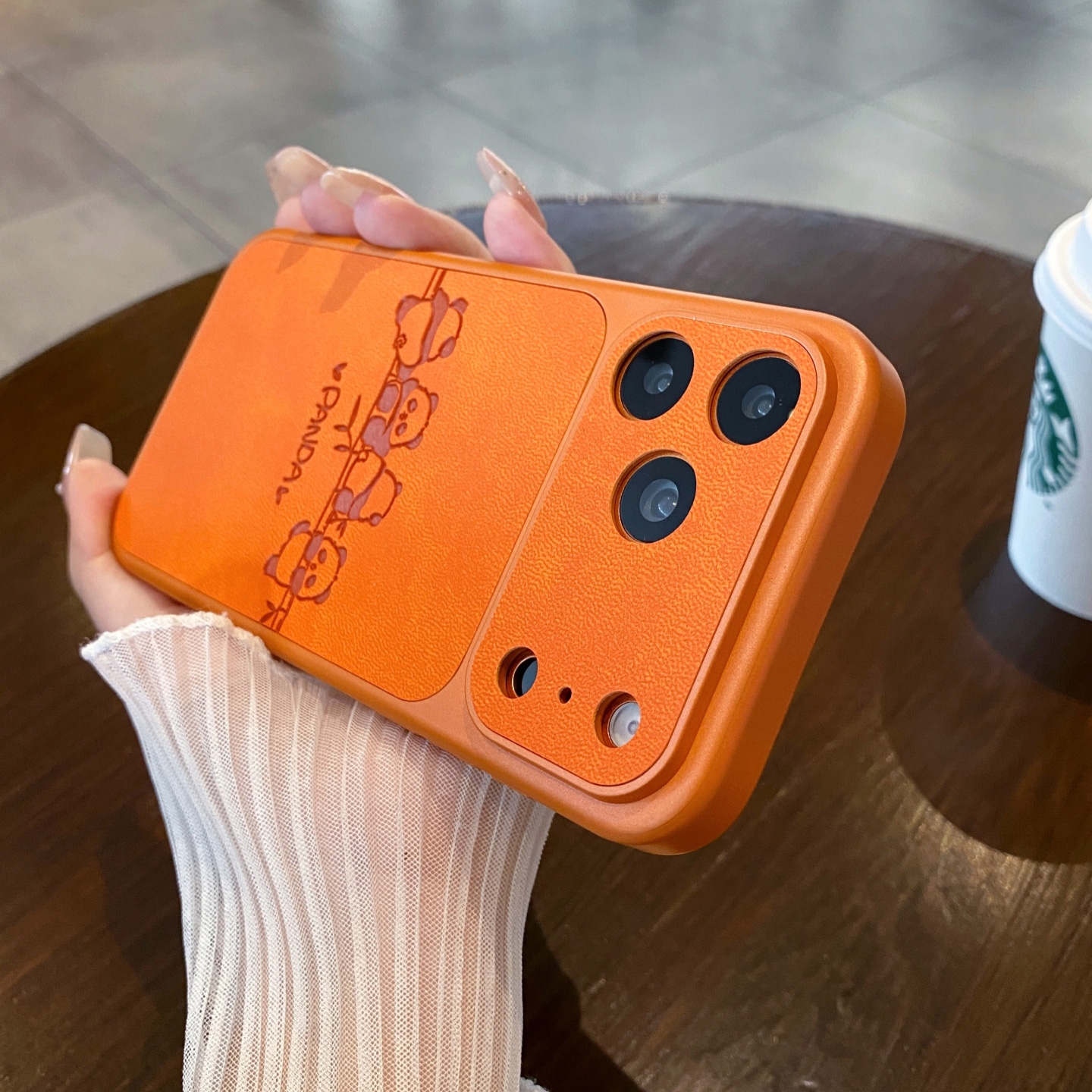 Cute Panda Leather Pattern Back iPhone 17 Pro Case - TPU Shockproof Phone Cover, Orange
