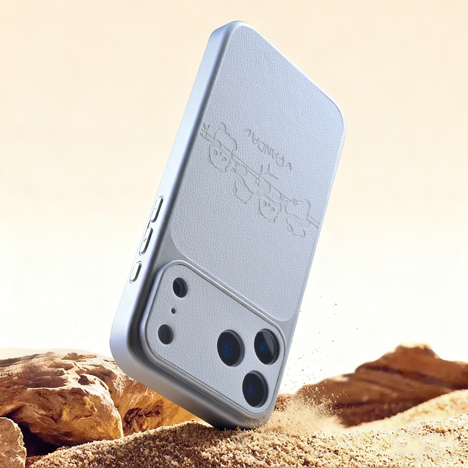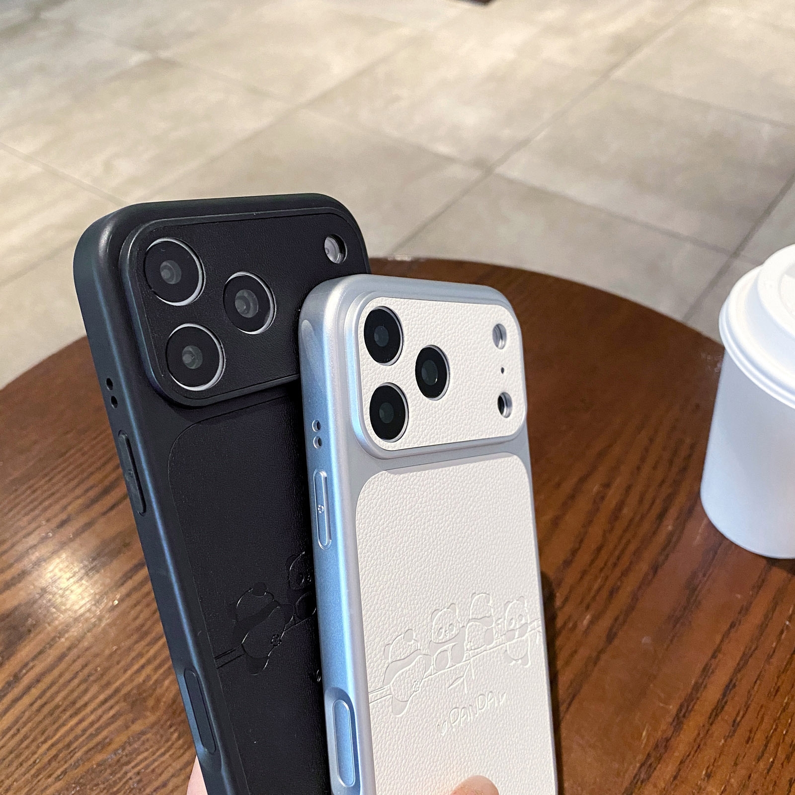 Cute Panda Leather Pattern Back iPhone 17 Pro Max Case - TPU Shockproof Phone Cover, White