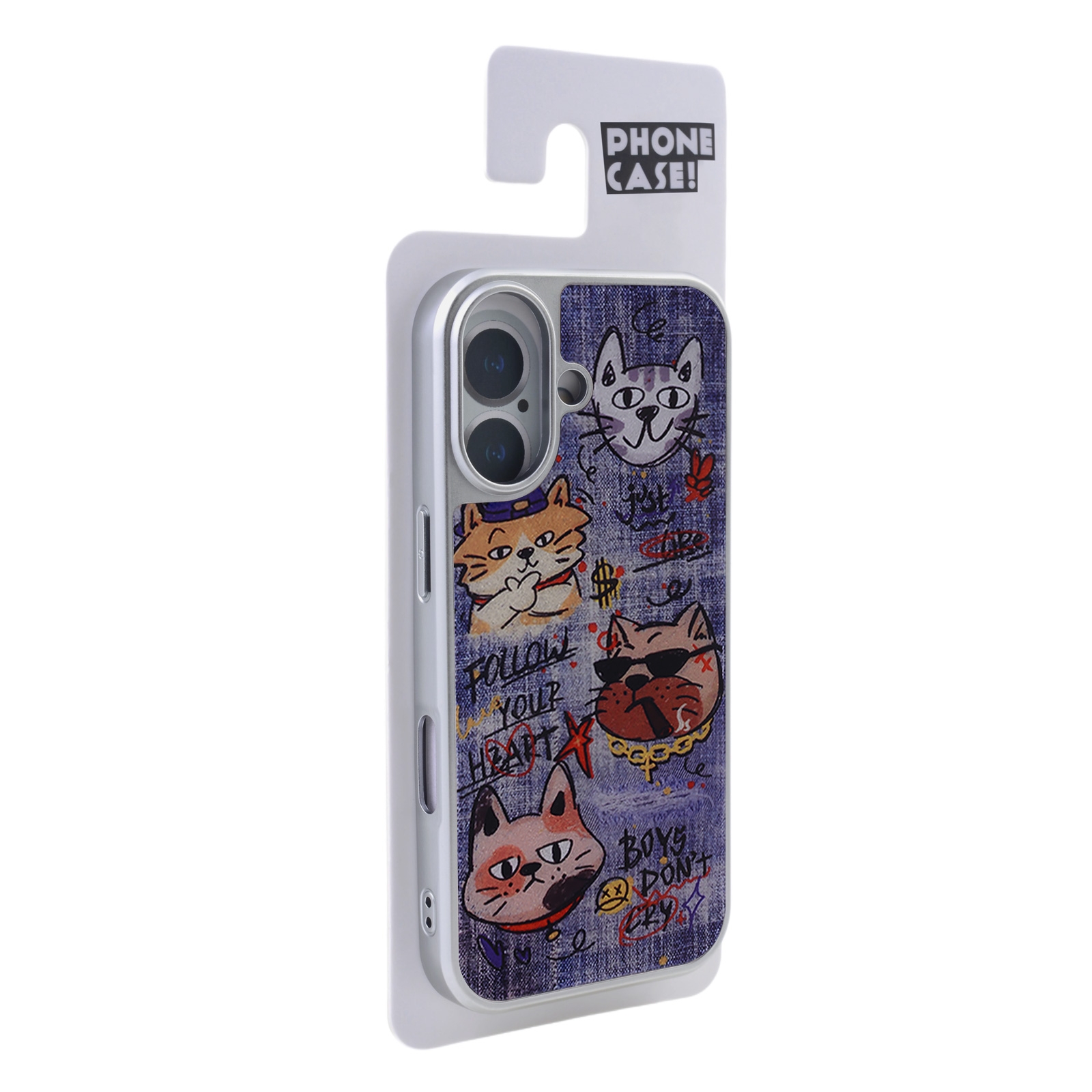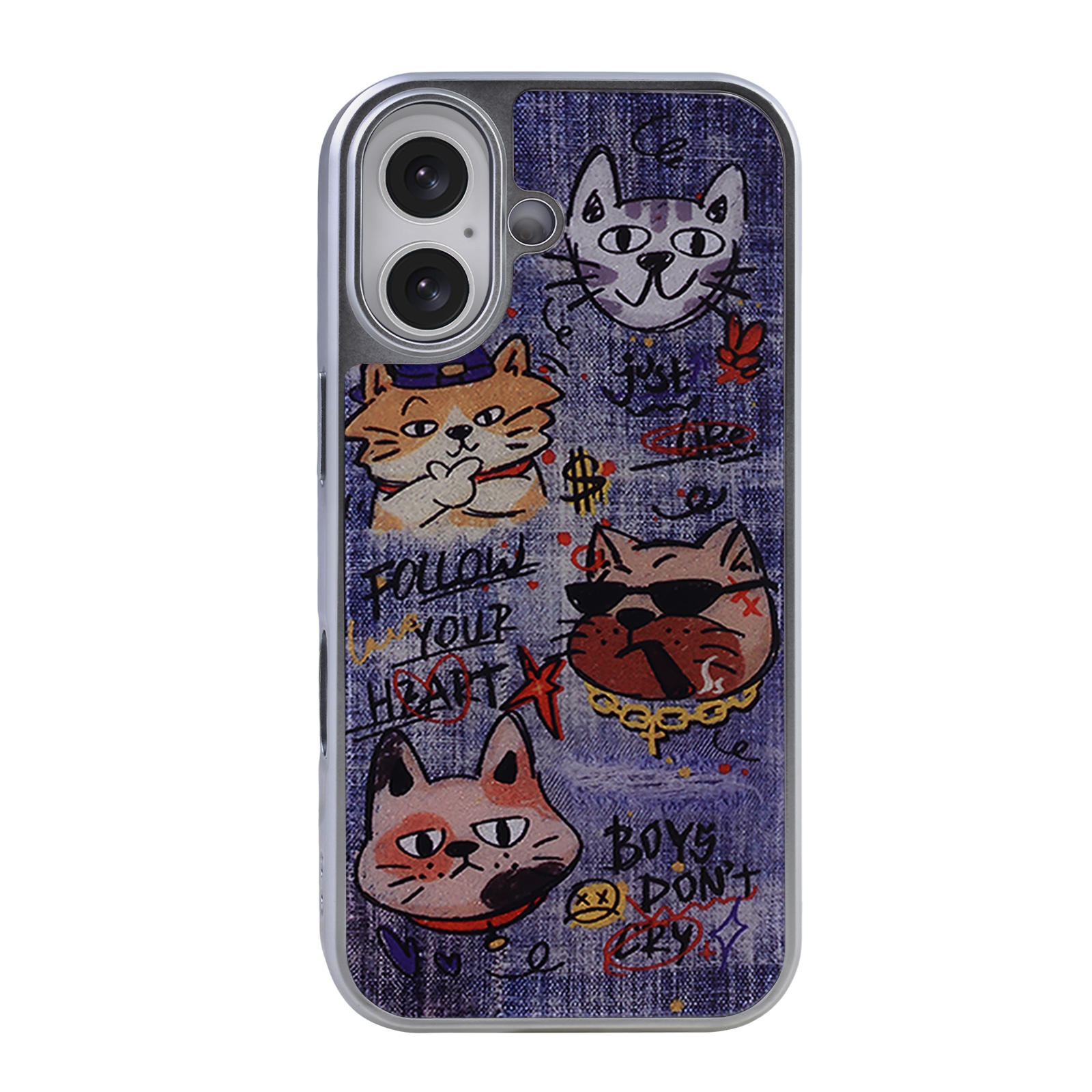 Denim Style Graffiti Cat Magnetic Case for iPhone 17 - Electroplated Frame Protective Phone Cover