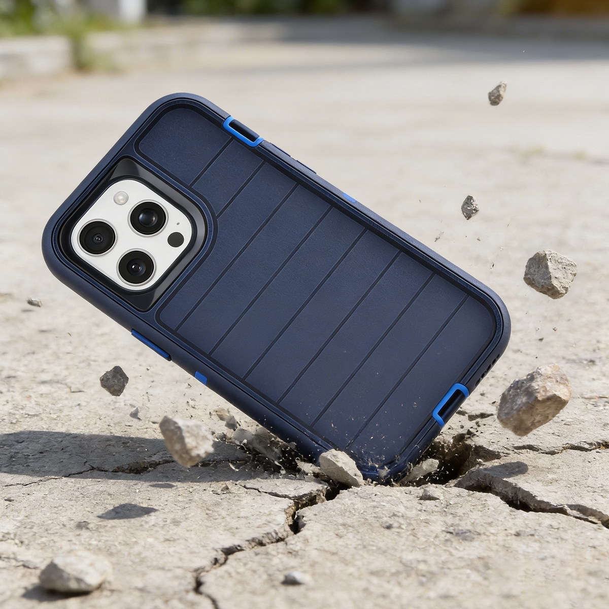 Durable Striped Texture Phone Case for iPhone 14 Pro Max, Dark Blue