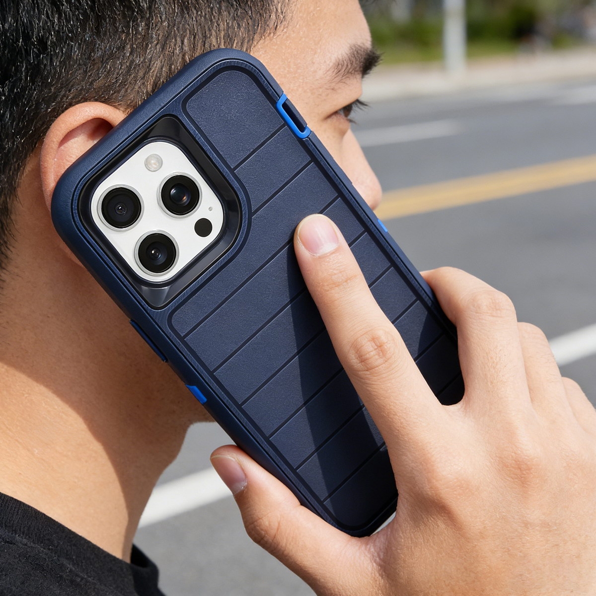 Durable Striped Texture Phone Case for iPhone 15 Pro Max, Dark Blue