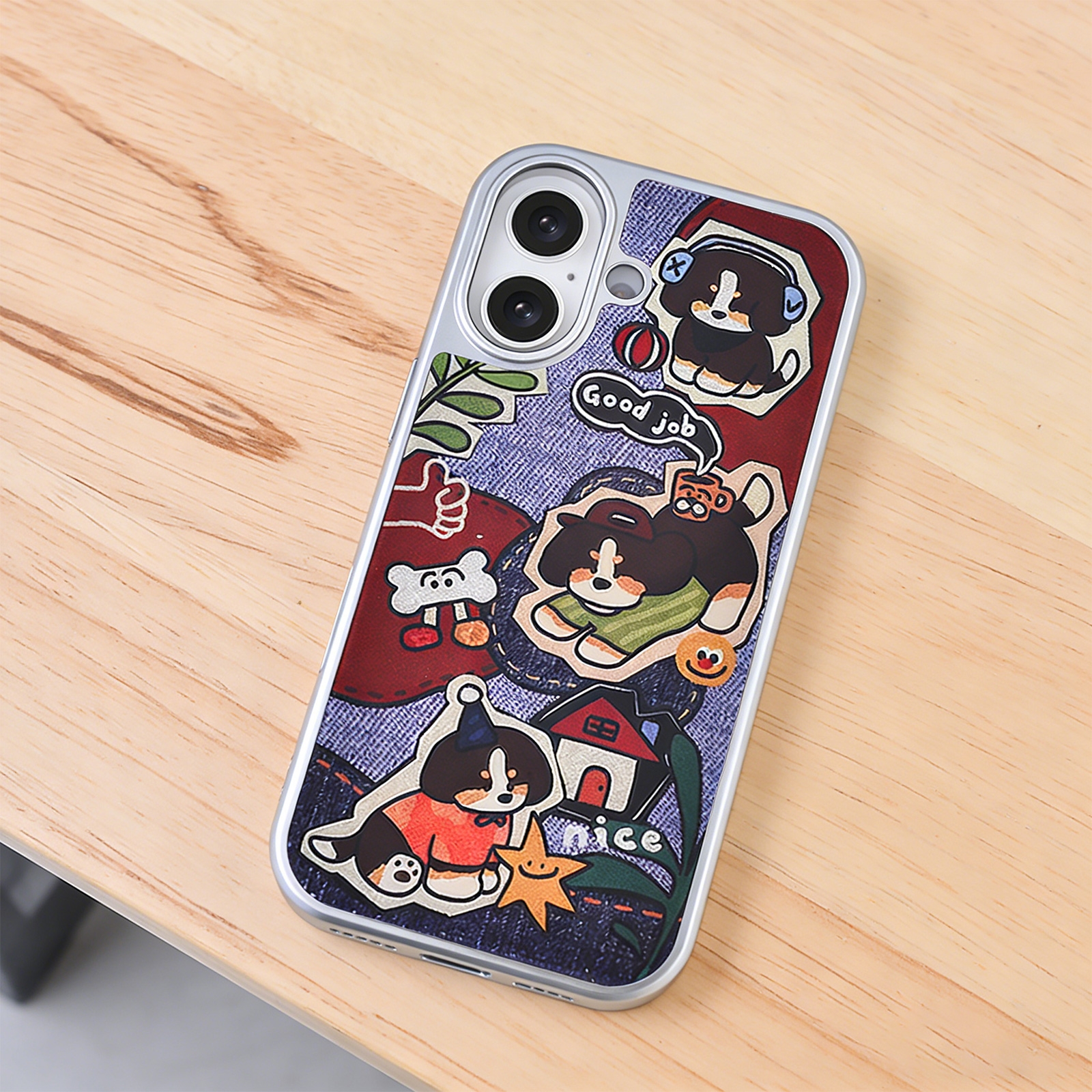 Electroplated Magnetic Graffiti Dog Phone Case for iPhone 17 - Cute Cartoon Puppy Print Cover