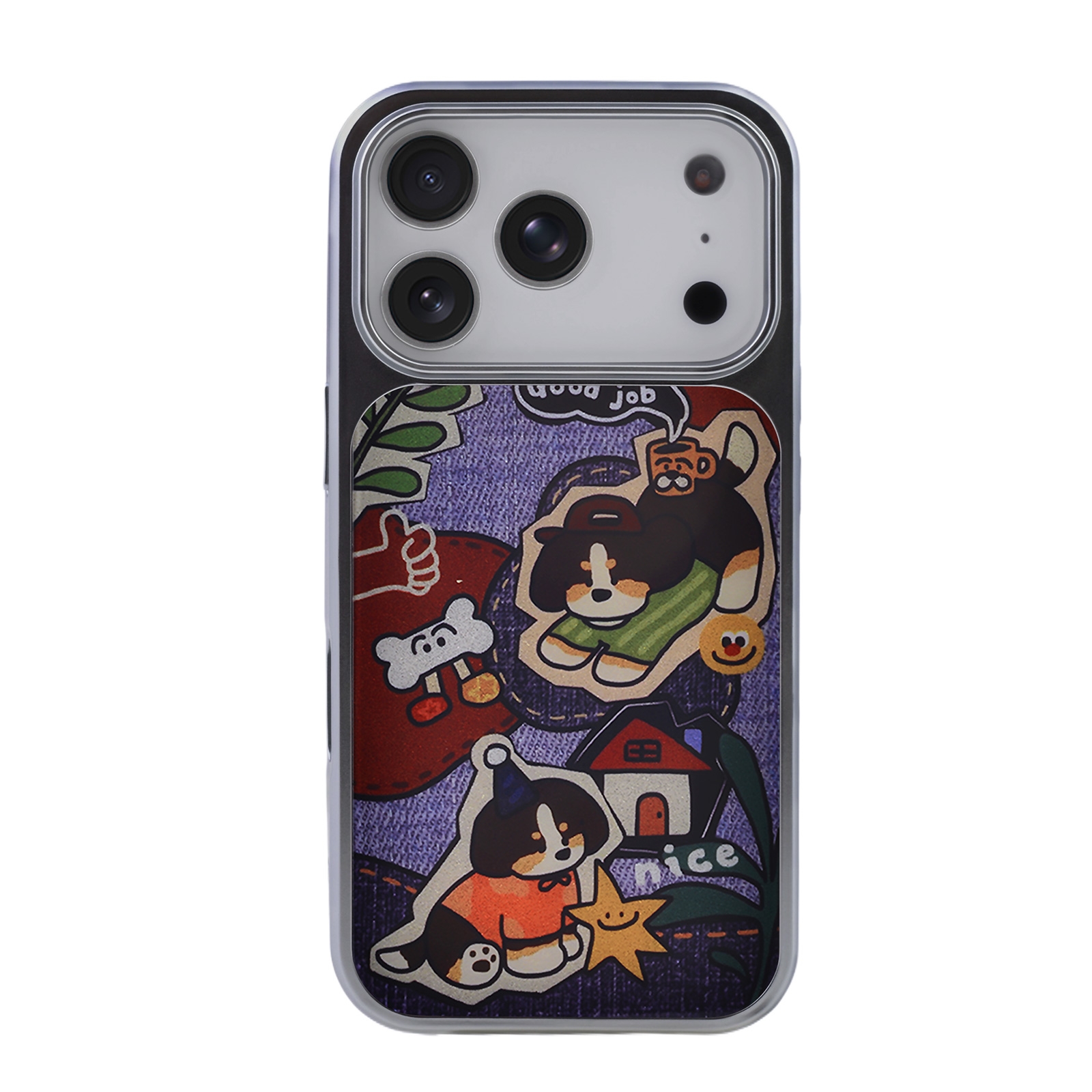 Electroplated Magnetic Graffiti Dog Phone Case for iPhone 17 Pro - Cute Cartoon Puppy Print Cover