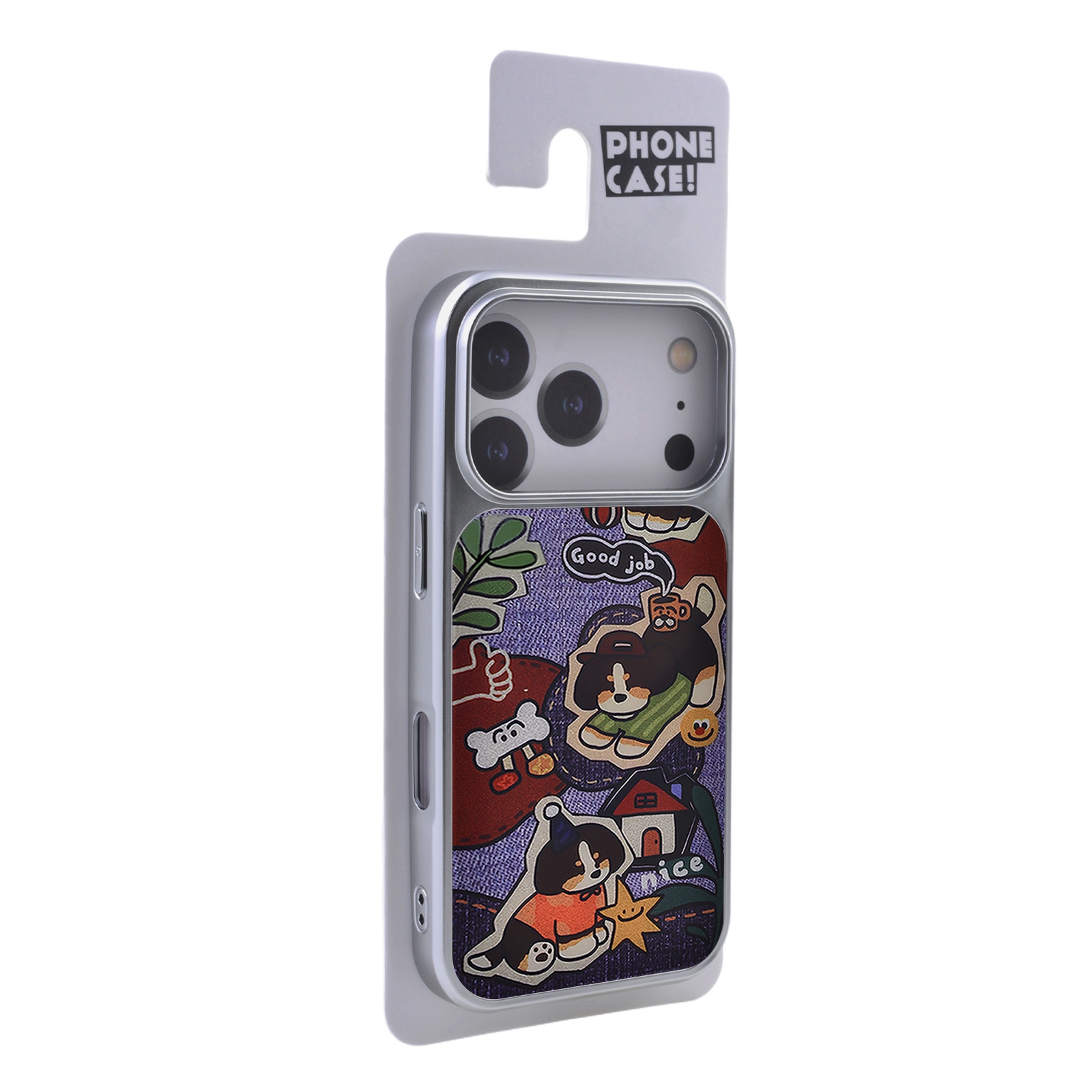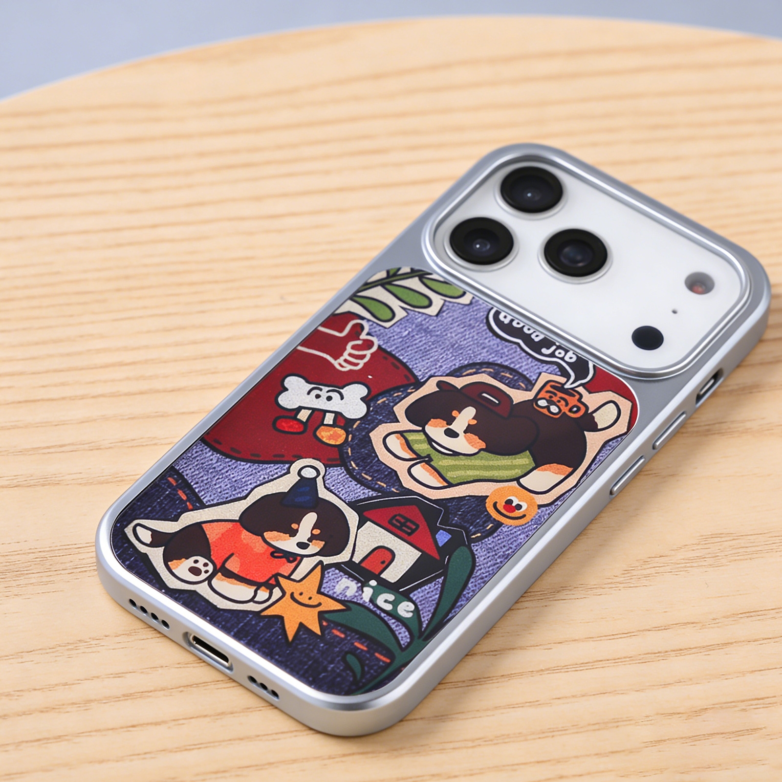 Electroplated Magnetic Graffiti Dog Phone Case for iPhone 17 Pro Max - Cute Cartoon Puppy Print Cover
