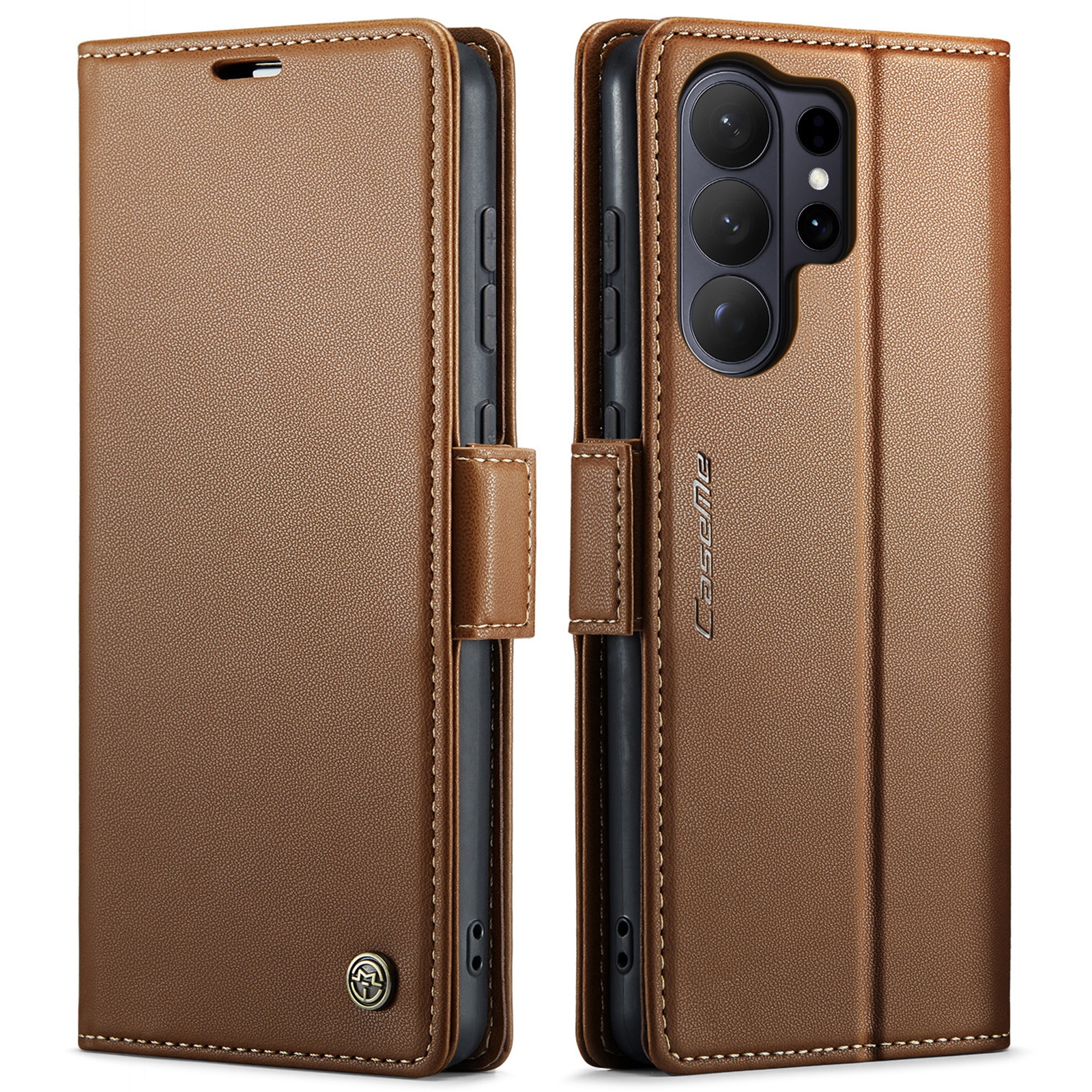 Flip Phone Case for S26 Ultra with Butterfly Buckle - RFID Blocking Anti, Brown