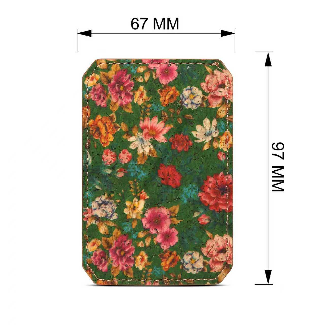Denior Floral & Butterfly Printed RFID Blocking Magnetic Card Holder | Cork | Holds 2 Cards - Peony Green