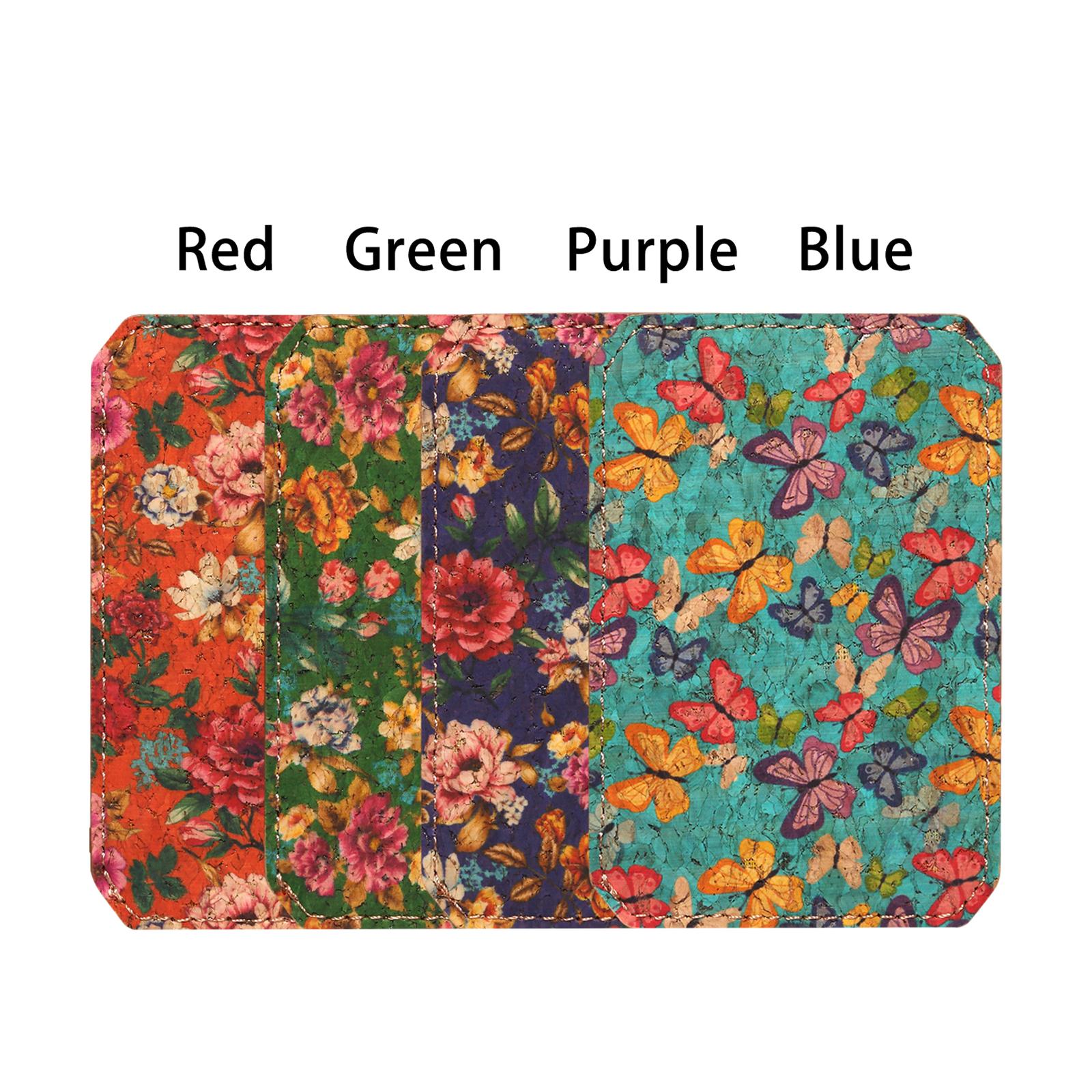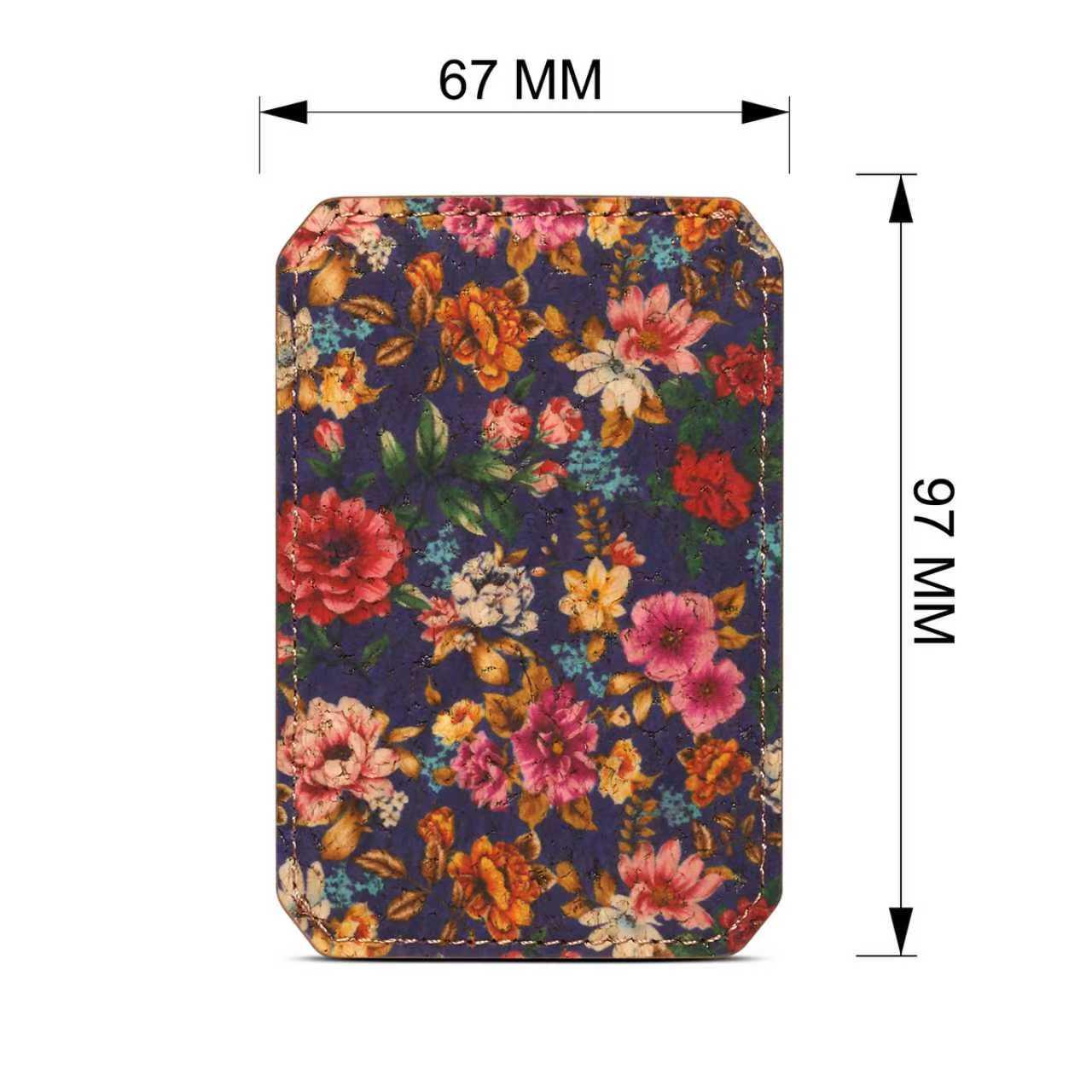 Denior Floral & Butterfly Printed RFID Blocking Magnetic Card Holder | Cork | Holds 2 Cards - Peony Purple