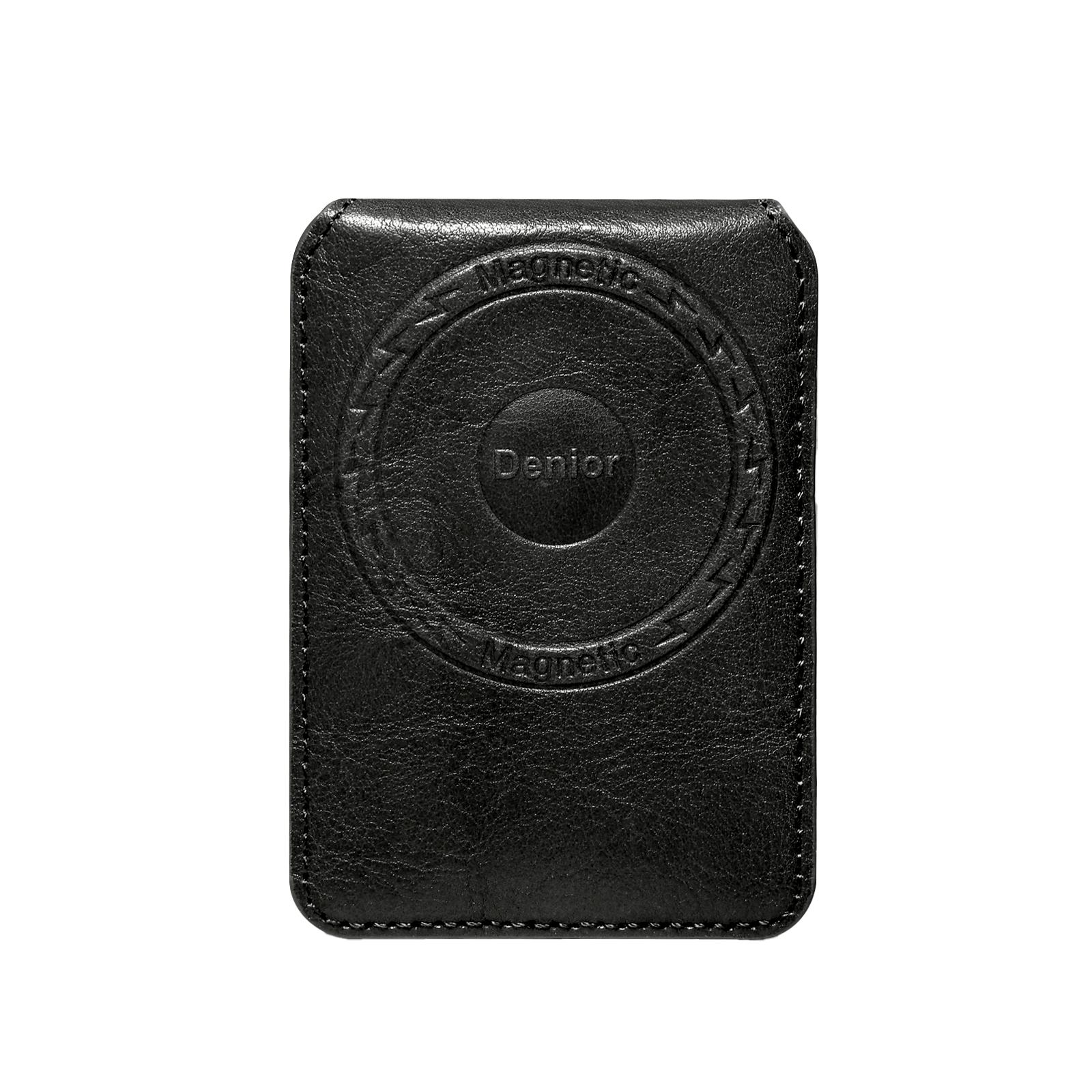 Denior Genuine Italian Cowhide N52 Magnetic RFID Blocking Card Holder | Genuine Leather | Holds 3 Cards - Black