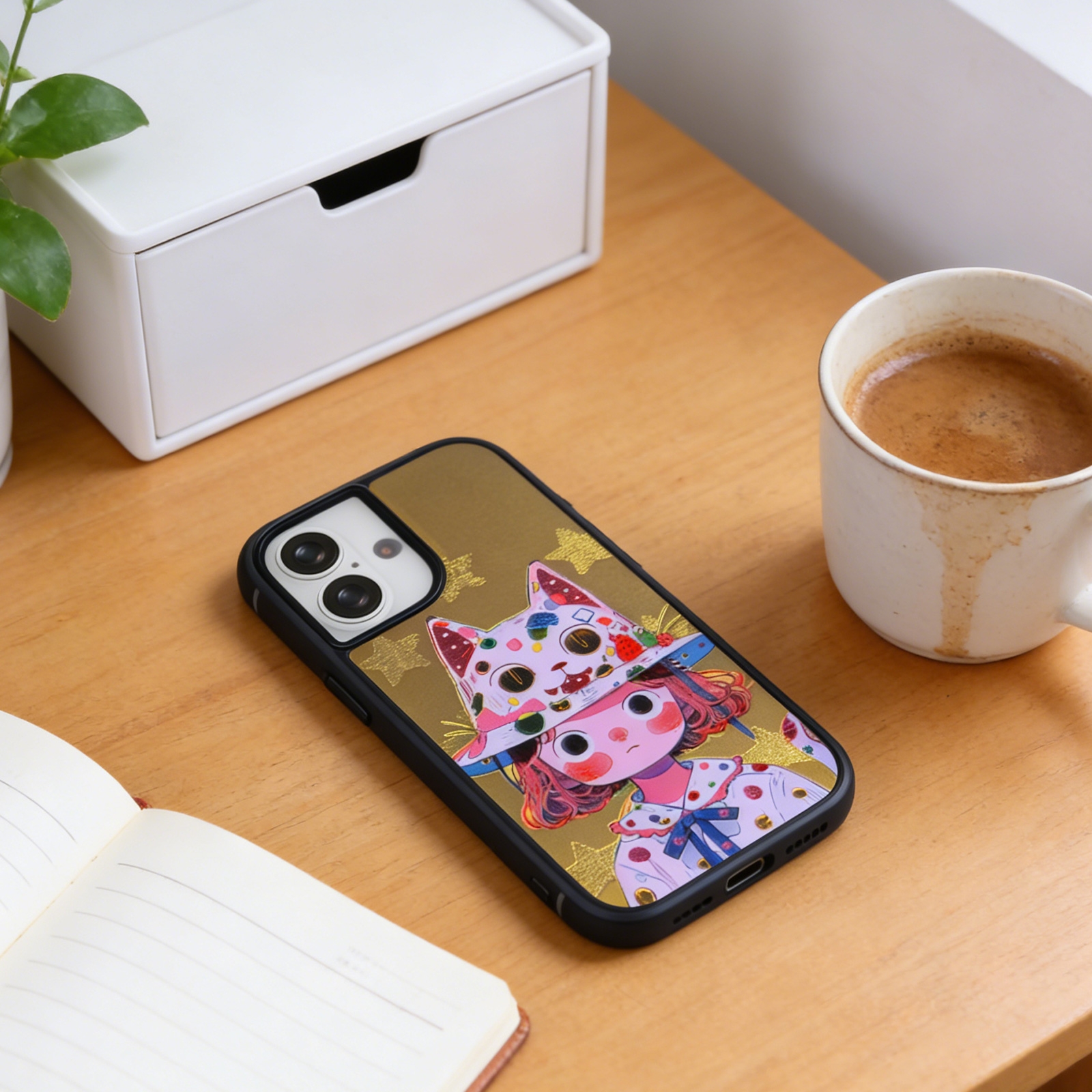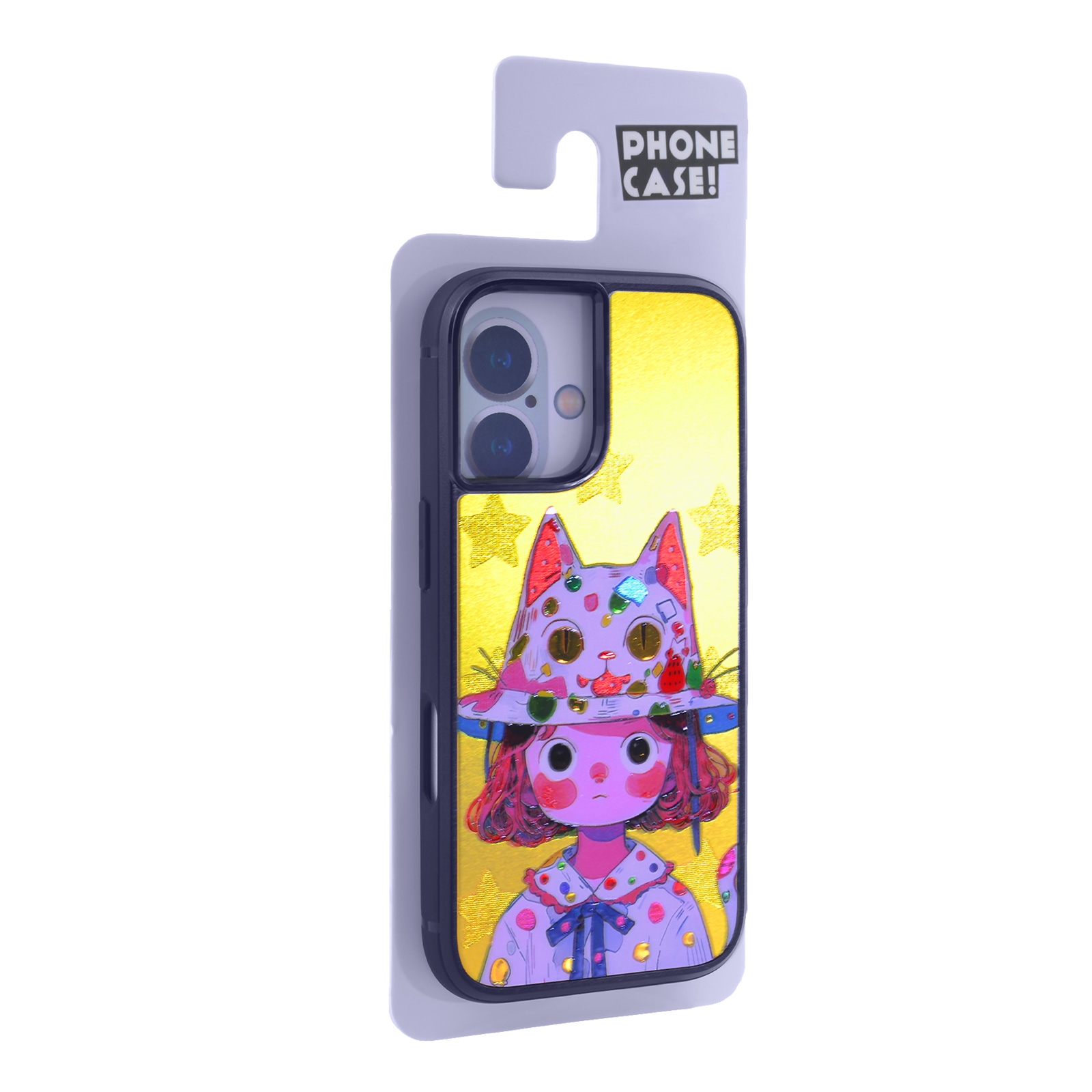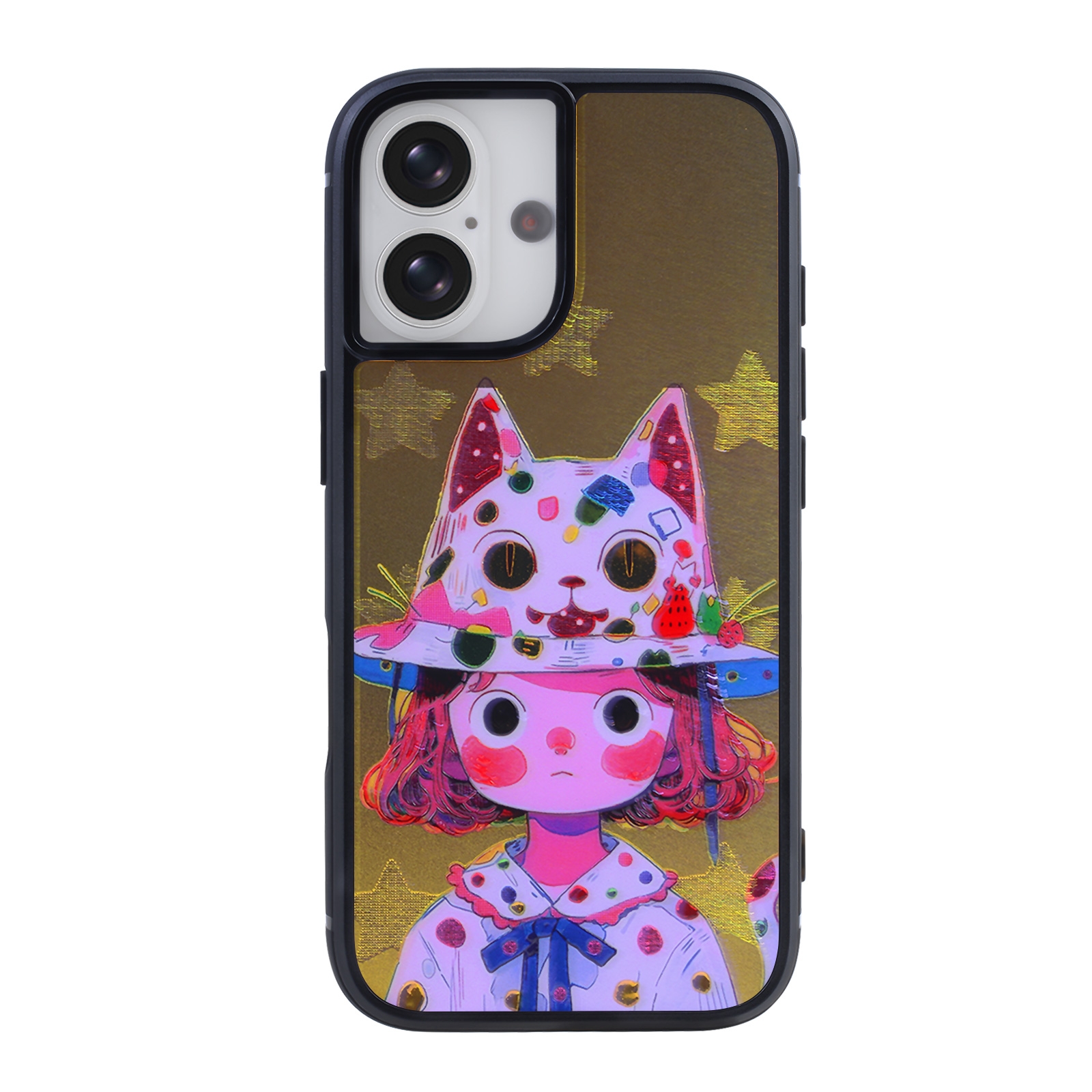 Girl with Cat Hat Phone Case for iPhone 17 - Whimsical Art Print Protective Cover, Yellow