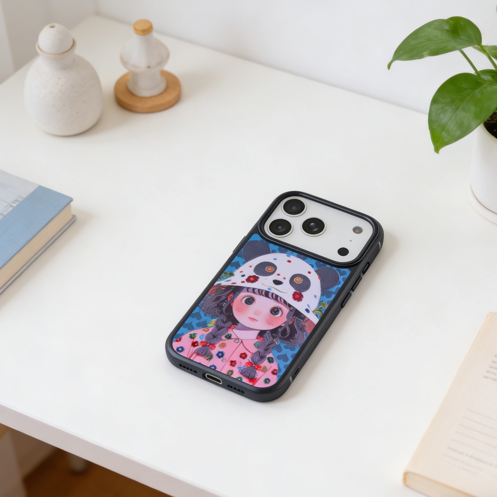 Girl with Panda Hat Phone Case for iPhone 17 Pro - Cute Art Print Protective Cover, Blue
