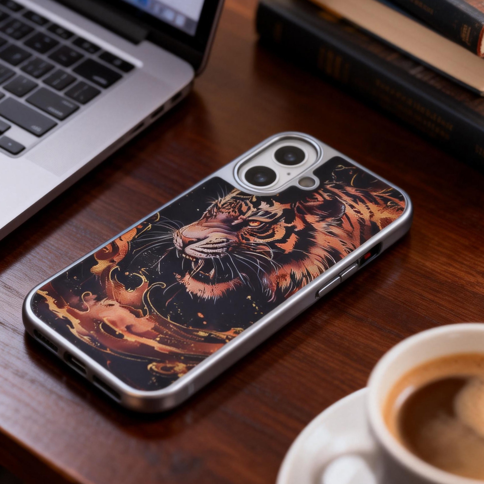 Golden Tiger Phone Case for iPhone 17 - Marbled Ink Art Print, Brown