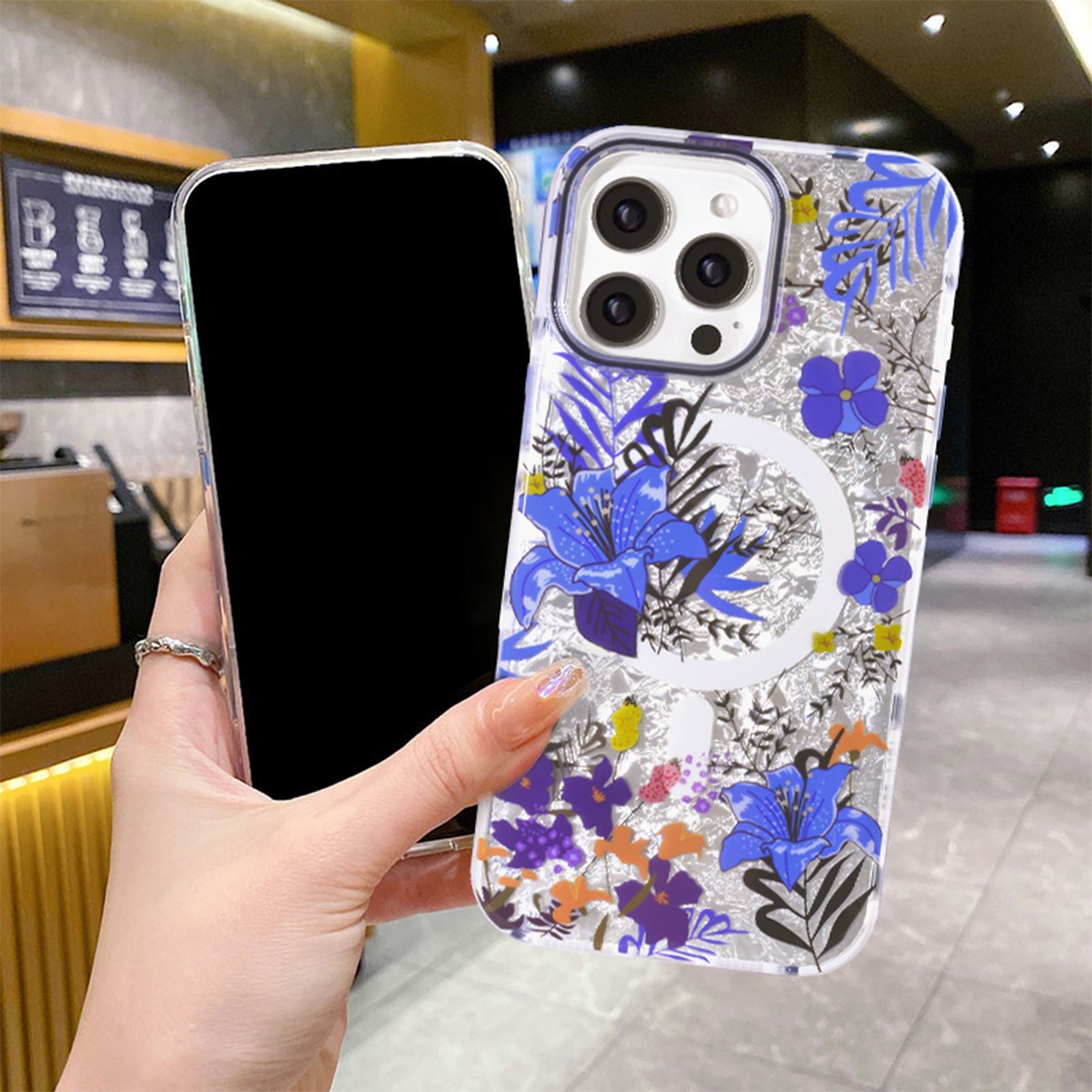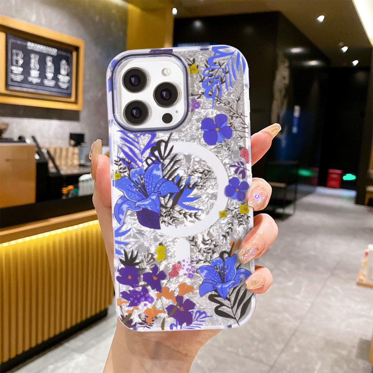 MagSafe Floral Case for iPhone 15 Pro Max - Blue