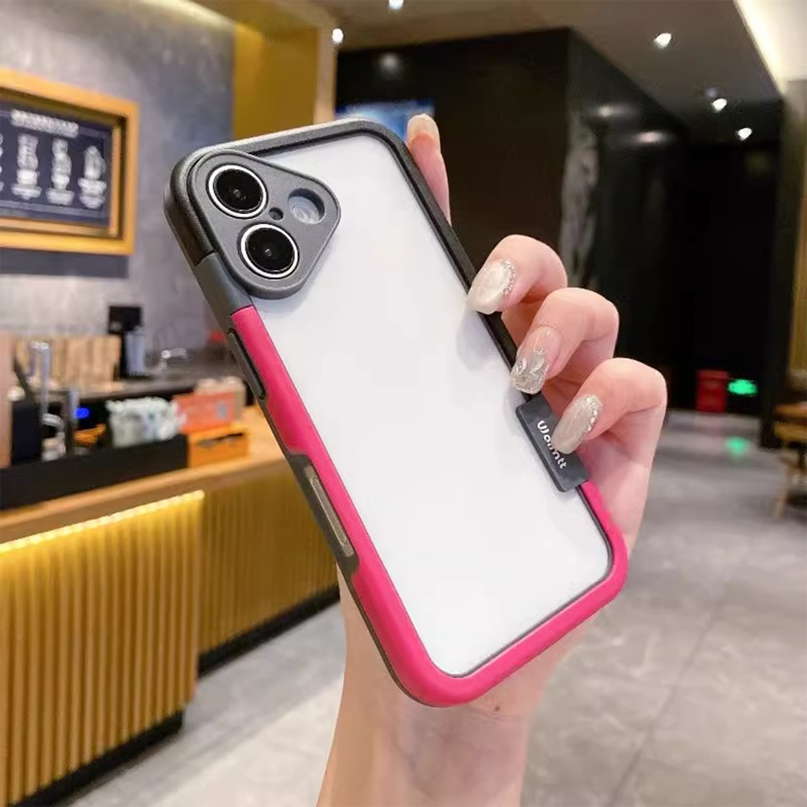 iPhone 16 Bicolor Frame TPU and PC Case Black - Rose