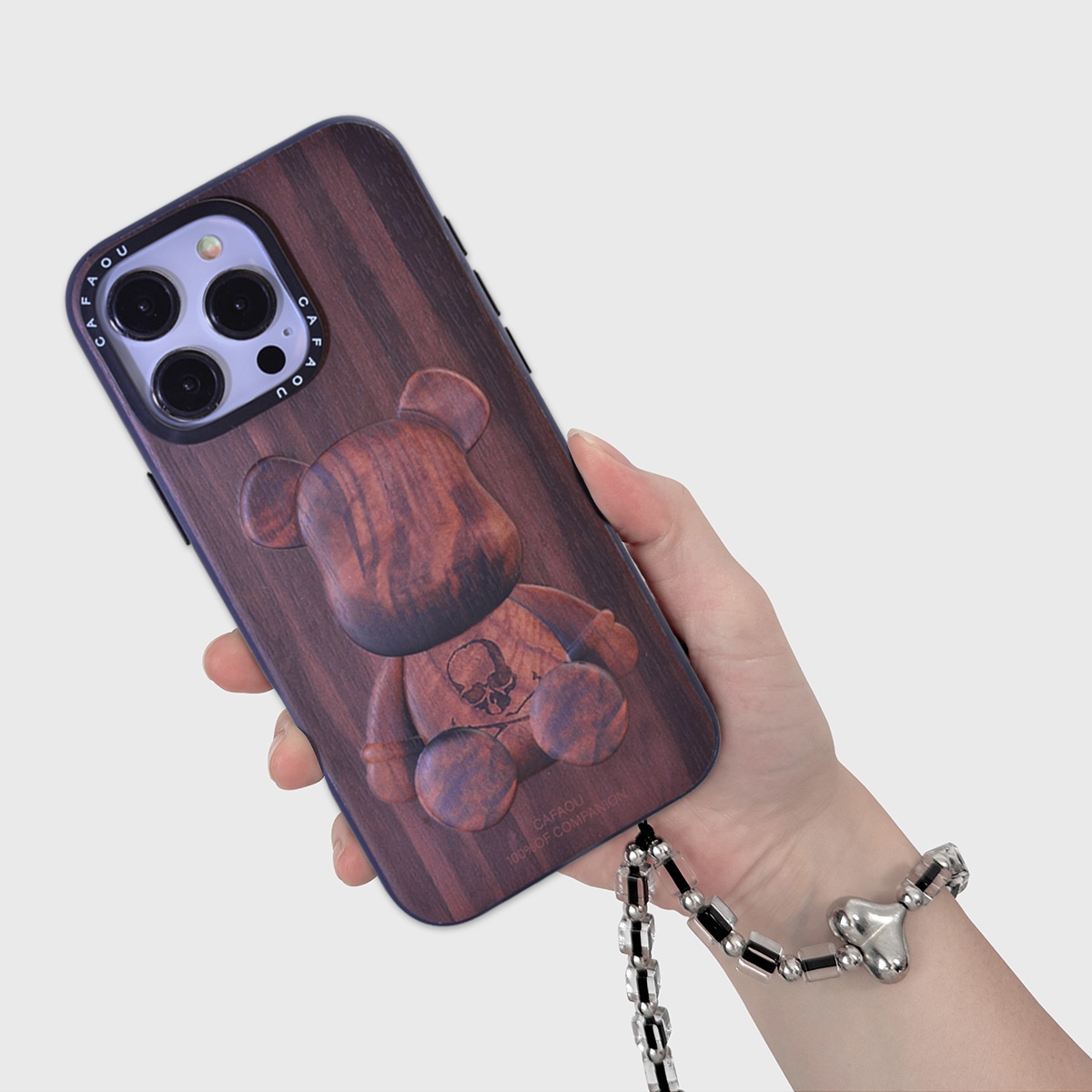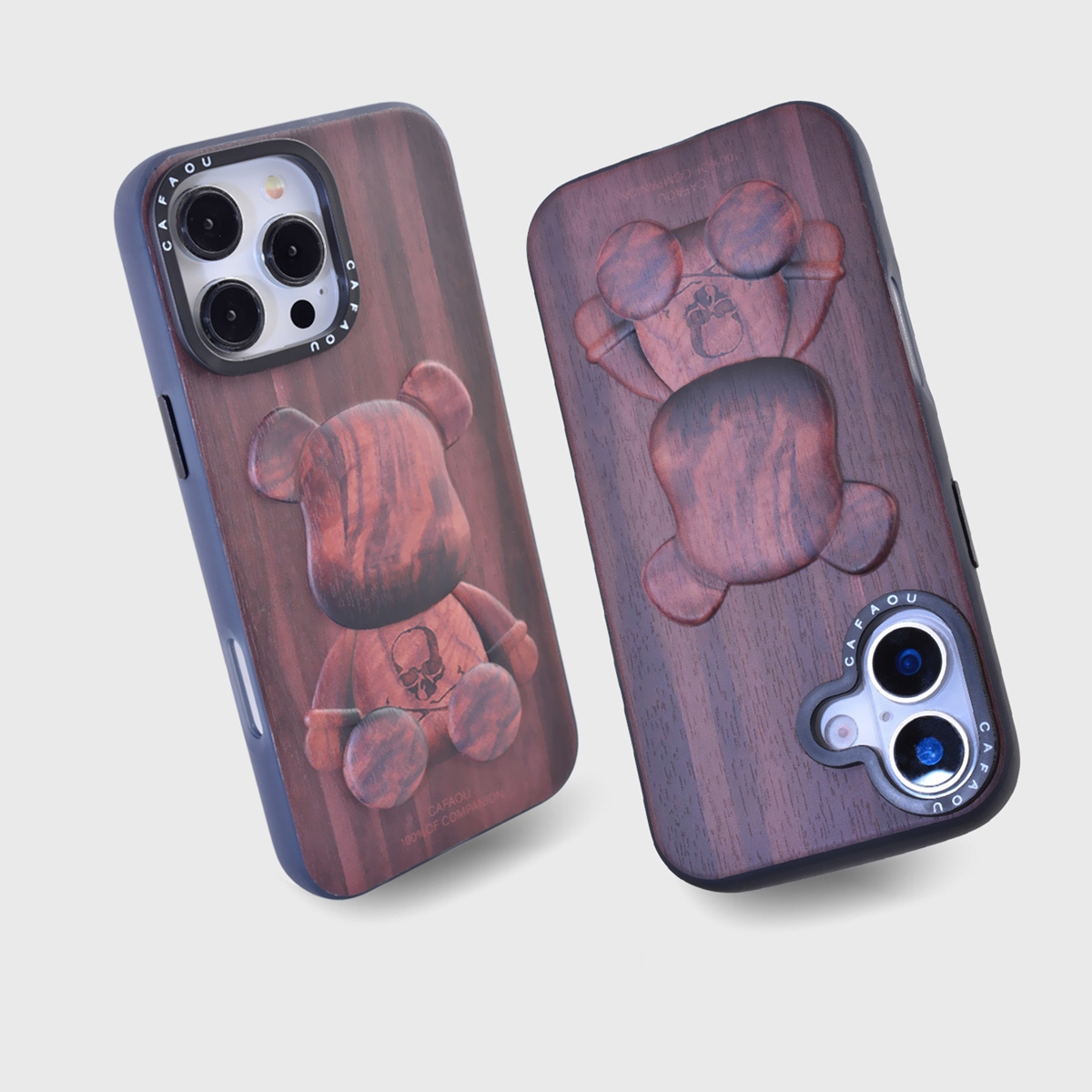 iPhone 16 Pro Max Bear Case with Magnetic Wood Grain Design