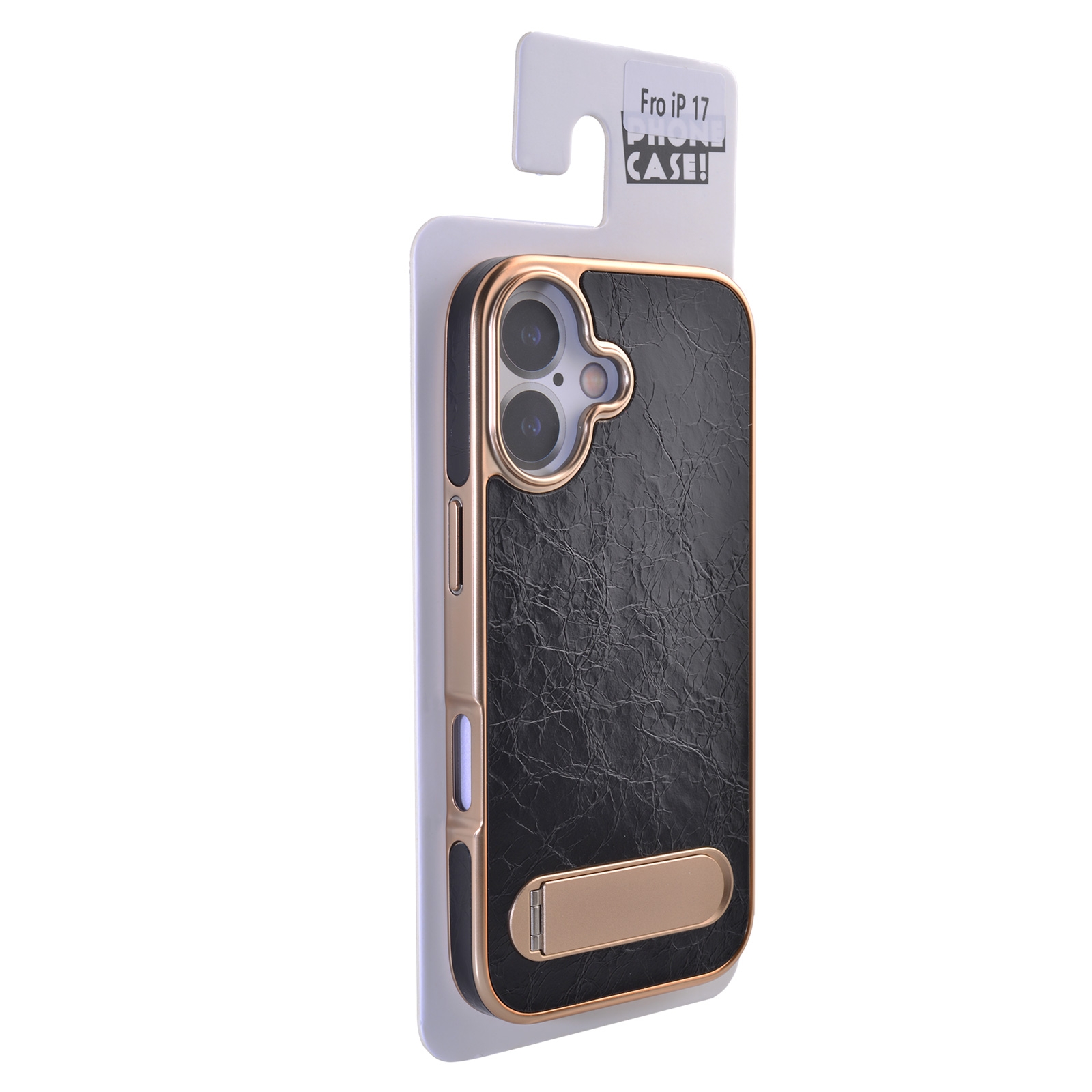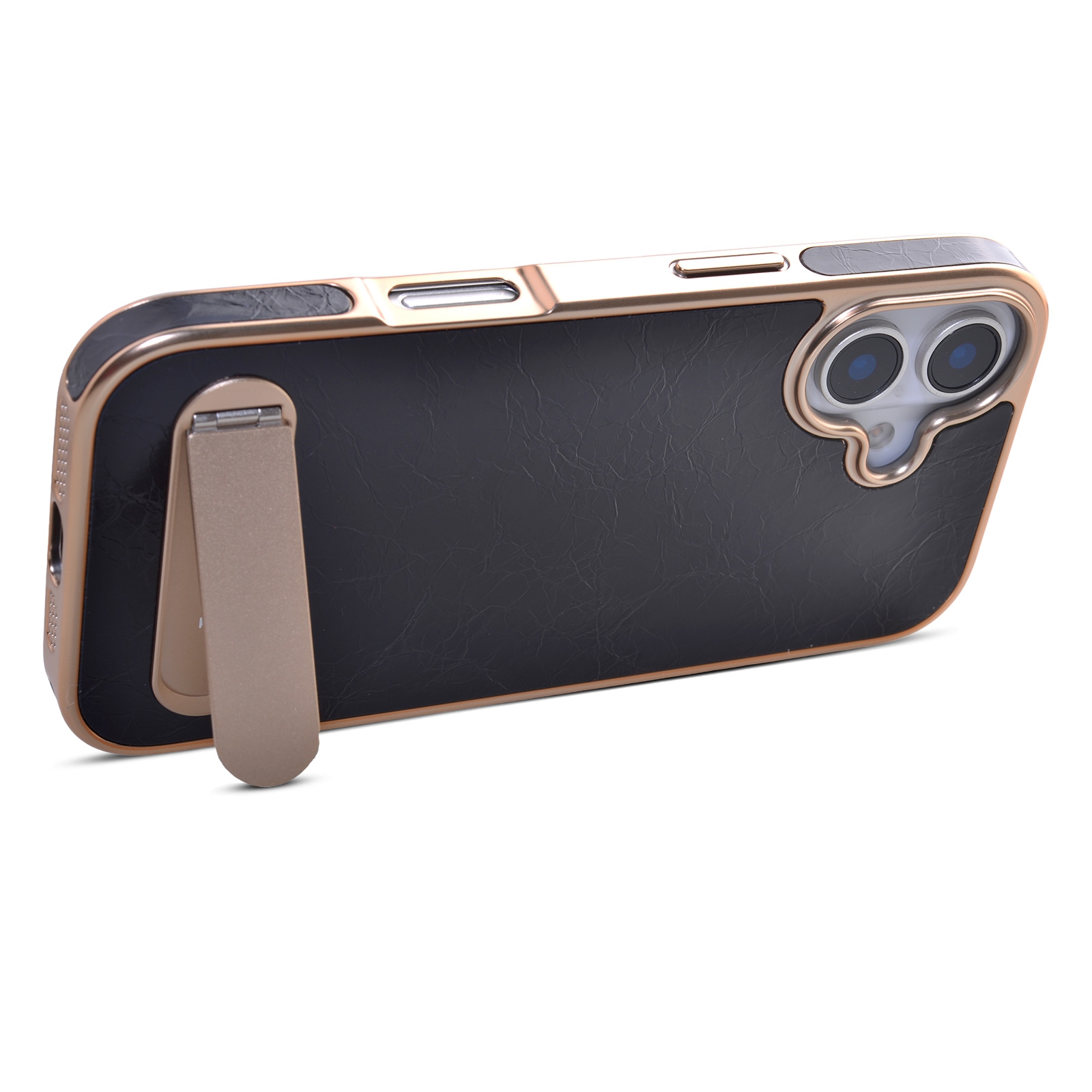iPhone 17 Leather Case Black– Genuine SYL Cowhide with Magnetic Kickstand