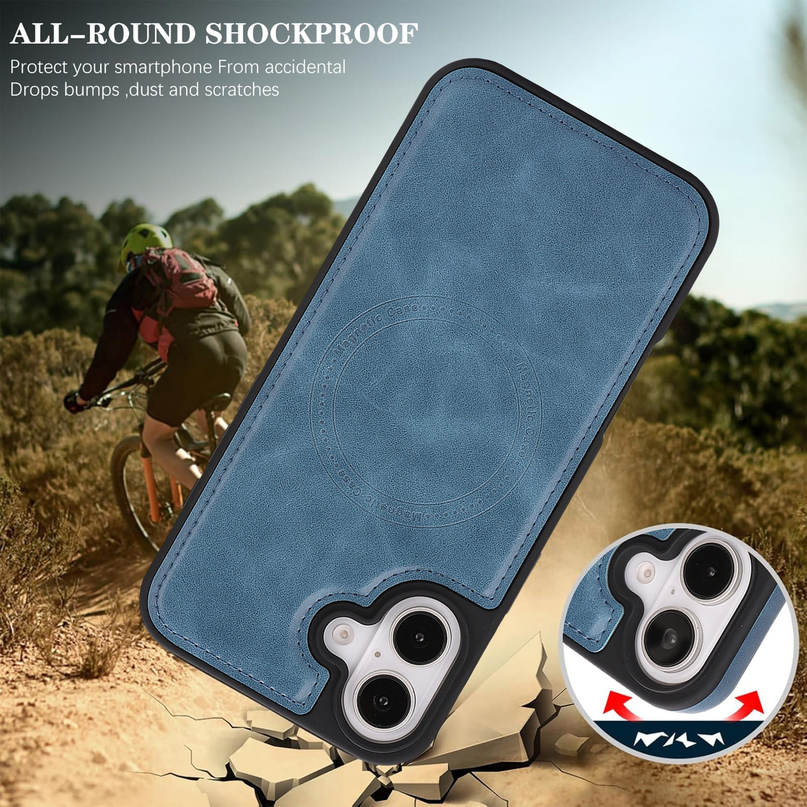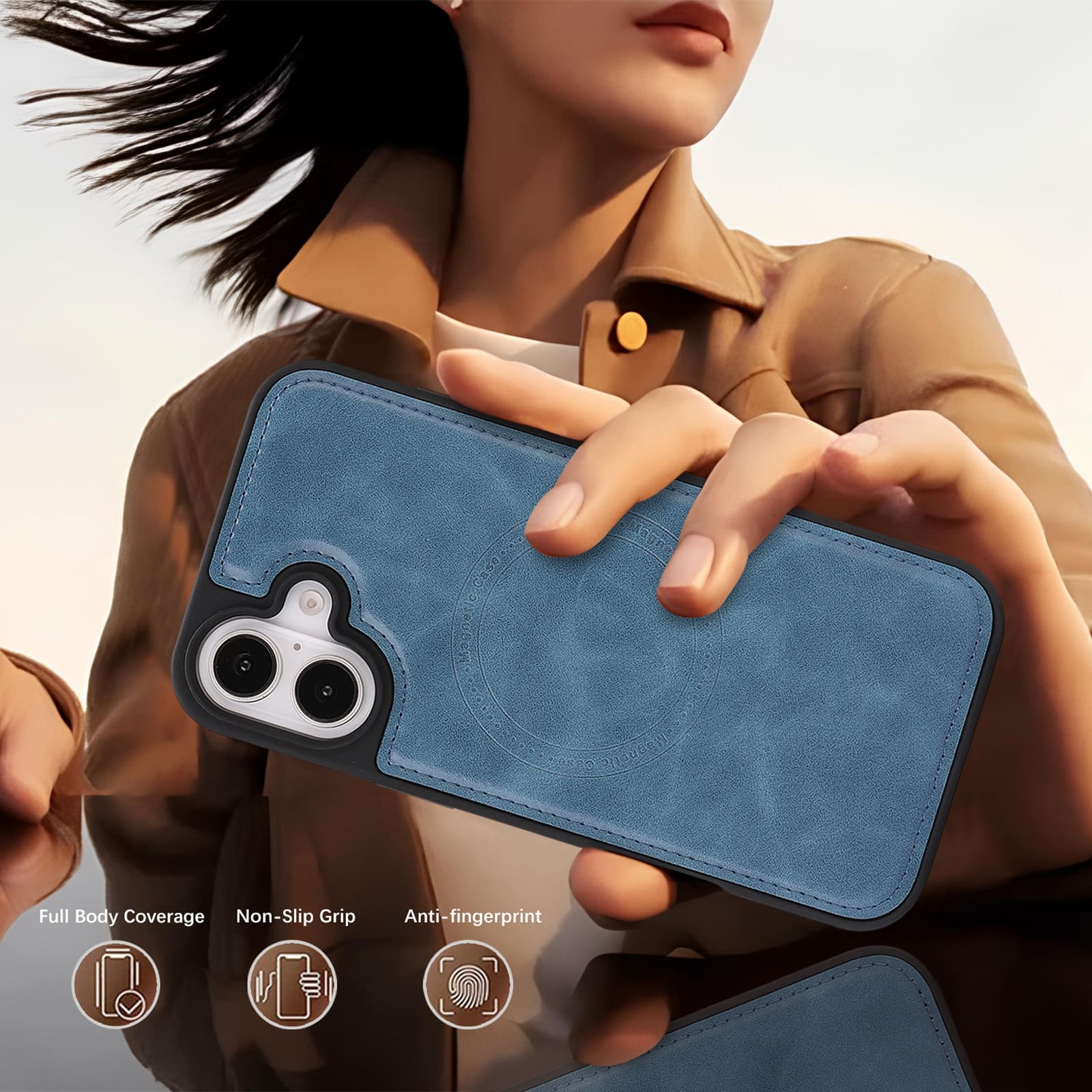 iPhone 17 Magnetic Case – Blue Leather Protection