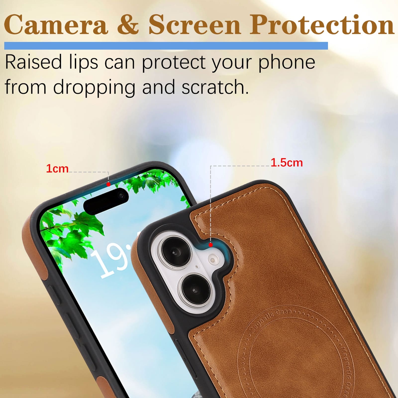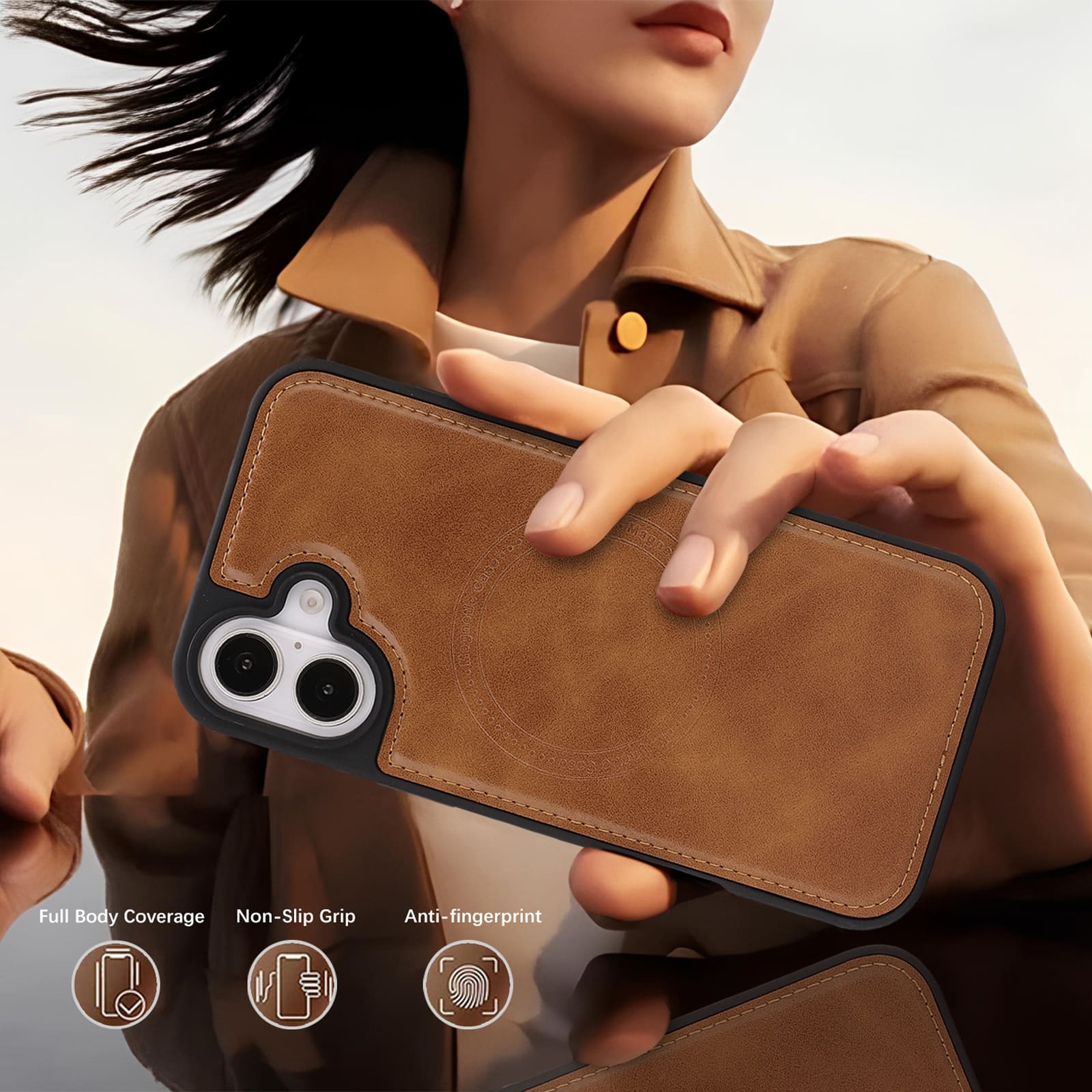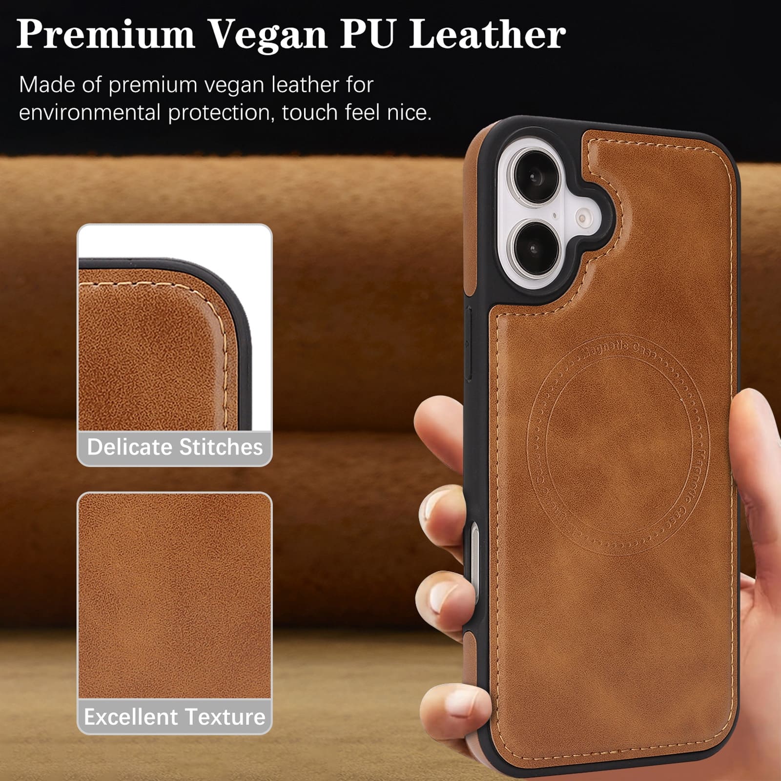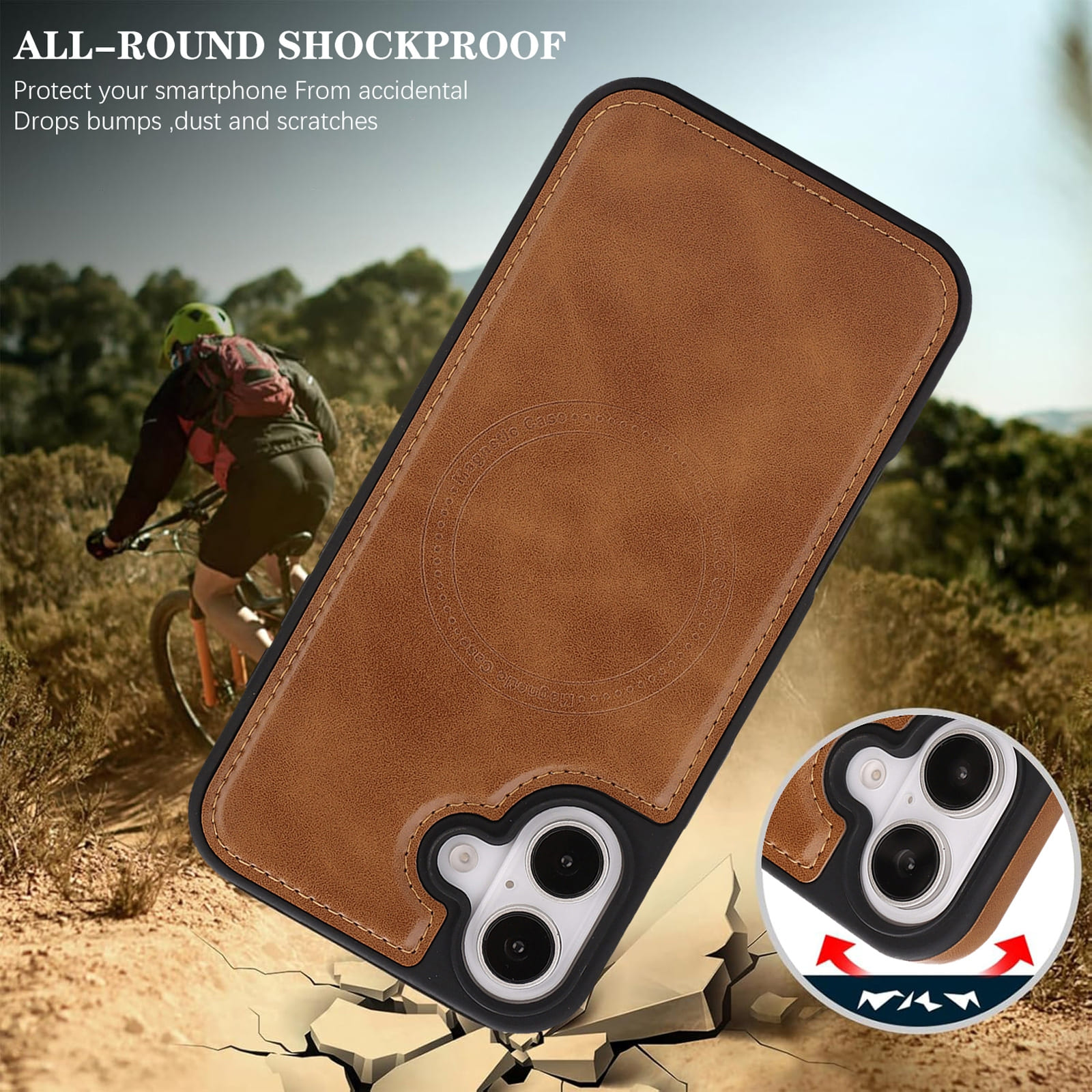 iPhone 17 Magnetic Case – Vegan Leather Shockproof MagSafe Cover Brown