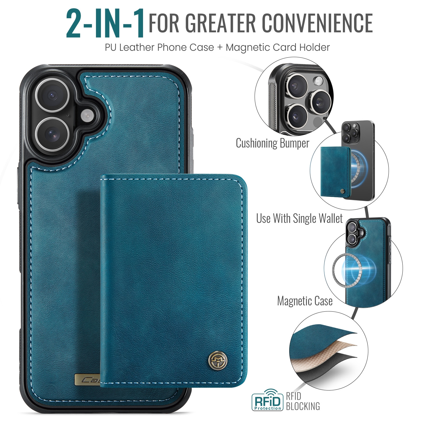 iPhone 17 Magnetic Case with Card Holders, Blue