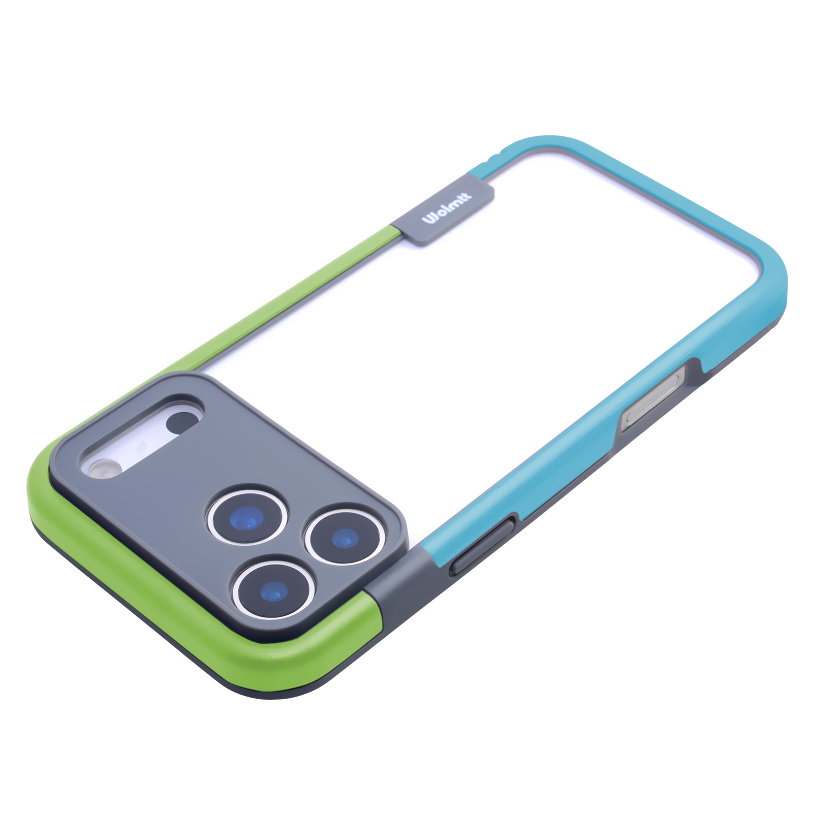iPhone 17 Pro Bicolor Case with Blue and Green Hybrid Frame