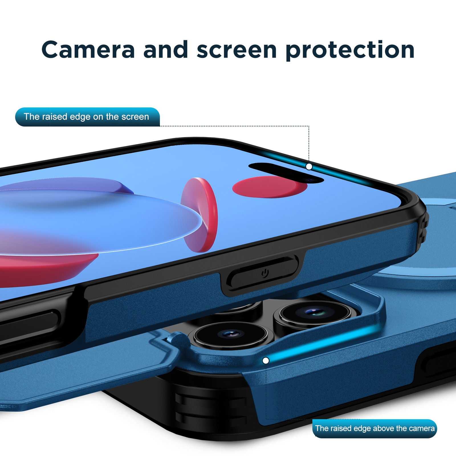 360 Rotation Kickstand Magnetic iPhone 17 Pro Case - Airbag Shockproof Metal Stand, Blue
