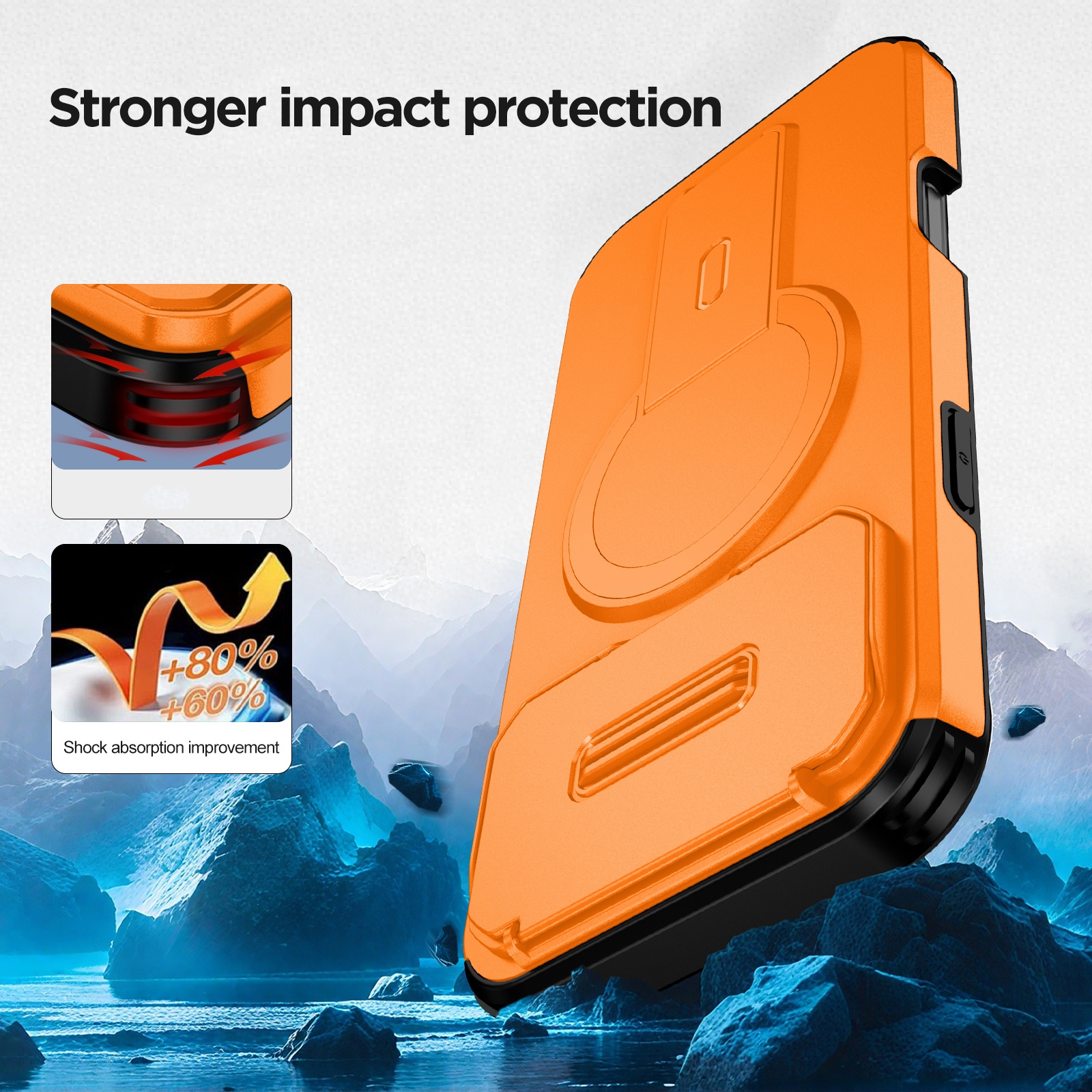 iPhone 17 Pro Hidden Kickstand Armor Design Protective Case, Orange