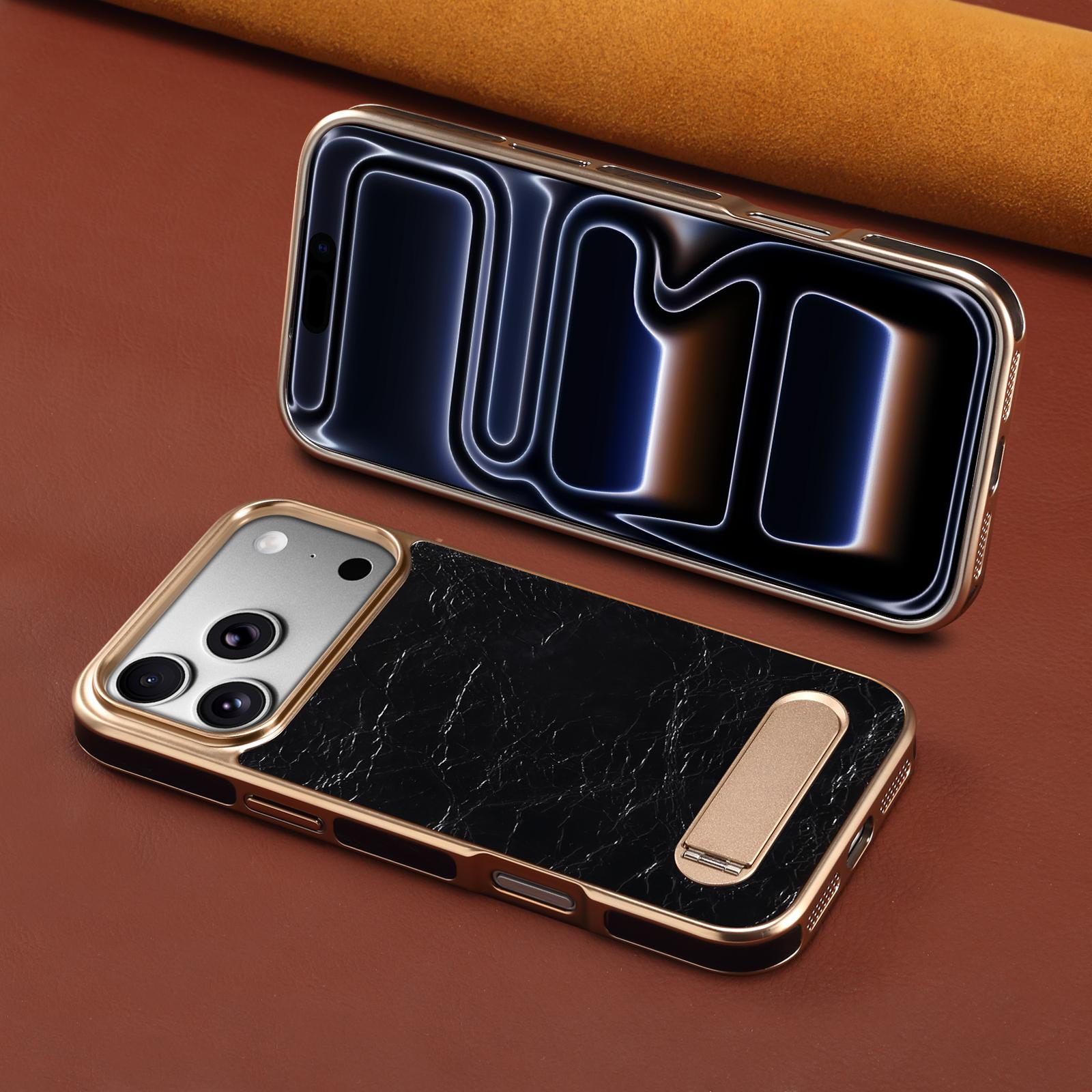 Top-Grain Leather Single-Stand Electroplated Case for iPhone 17 Pro, Black
