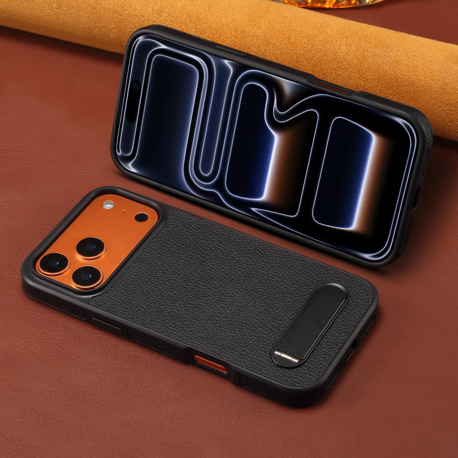 Lychee Texture Kickstand Case for iPhone 17 Pro, Black