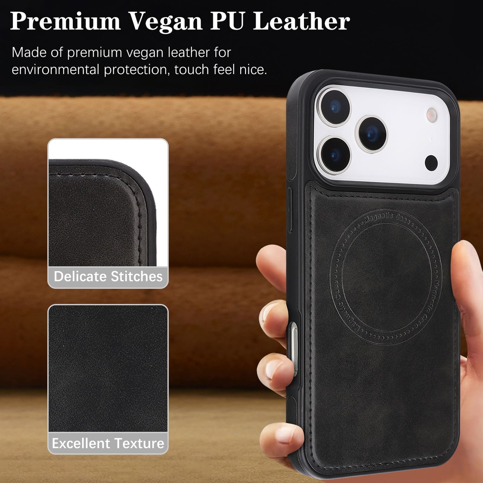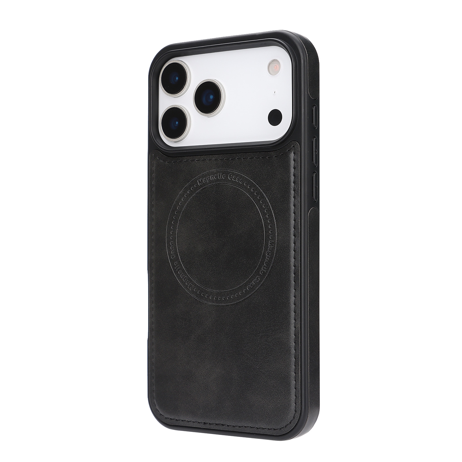 iPhone 17 Pro Magnetic Case – Vegan Leather Shockproof MagSafe Cover Black