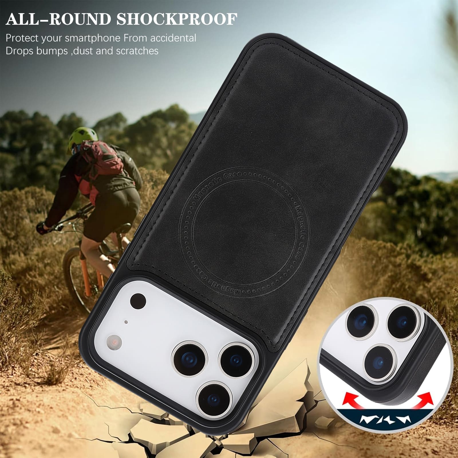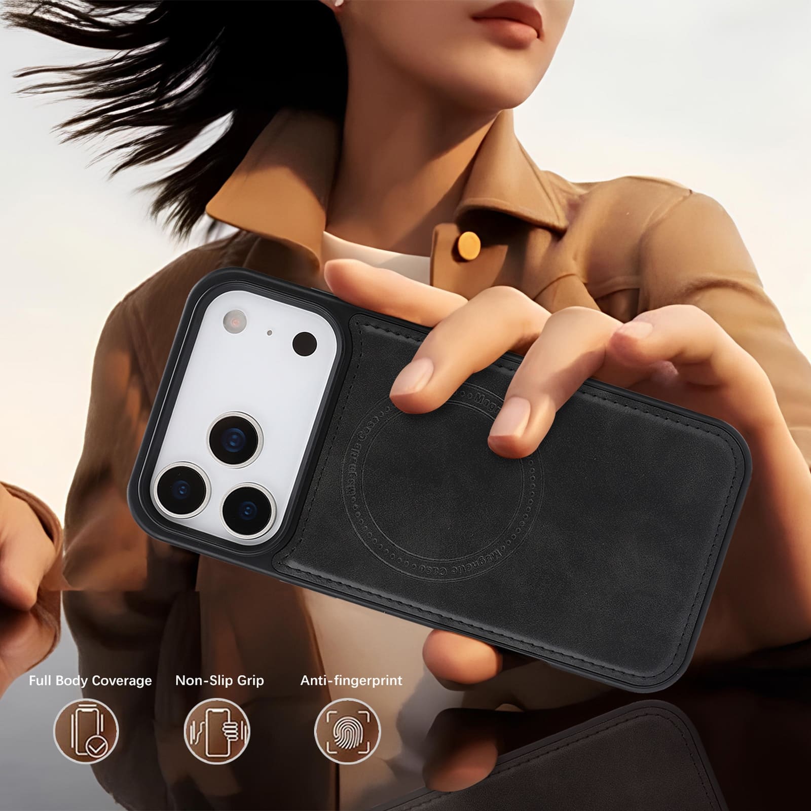 iPhone 17 Pro Magnetic Case – Black Leather Protection