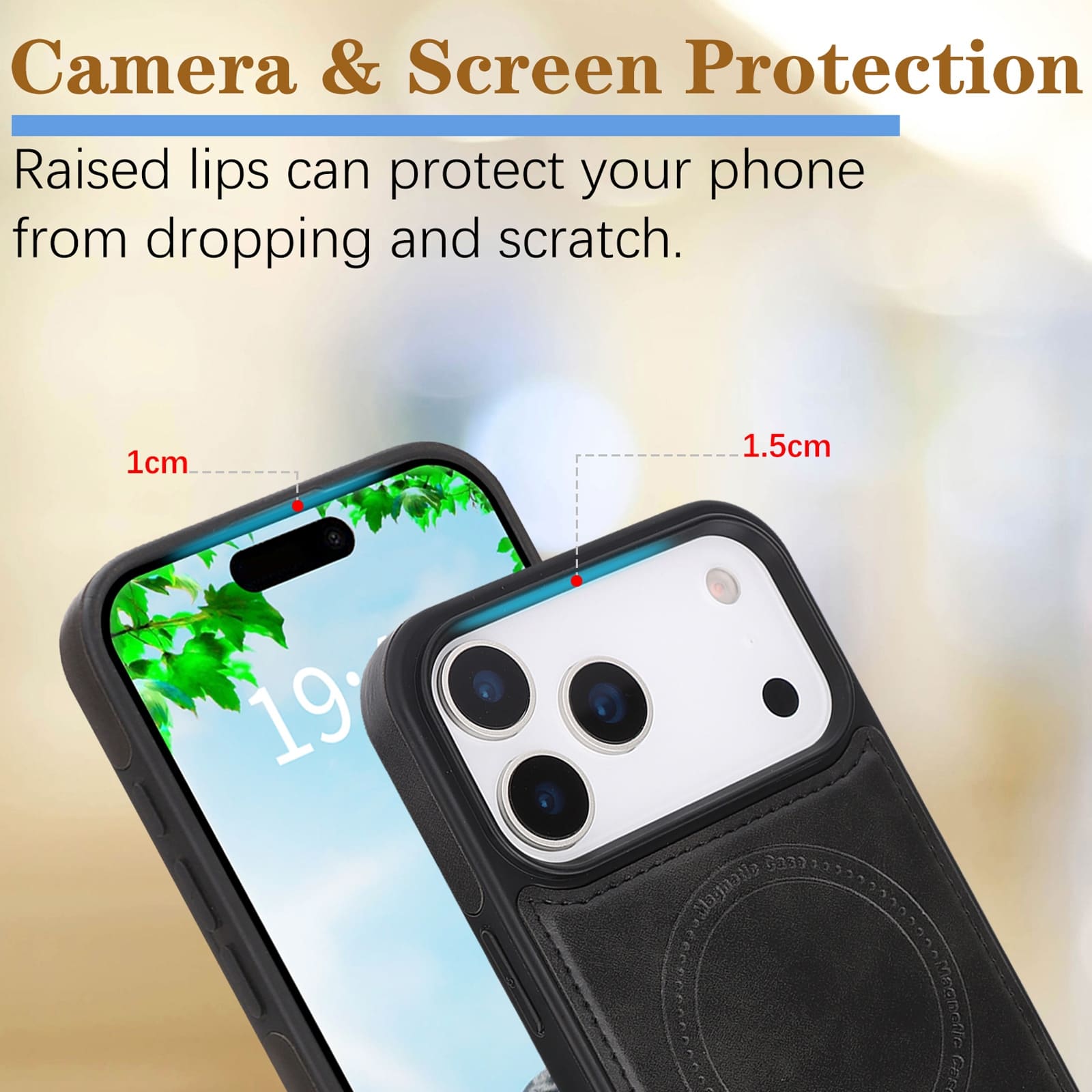 - Raised Camera & Screen Edges: 1mm raised bezel for the camera and 1.5mm for the screen to prevent surface contact.