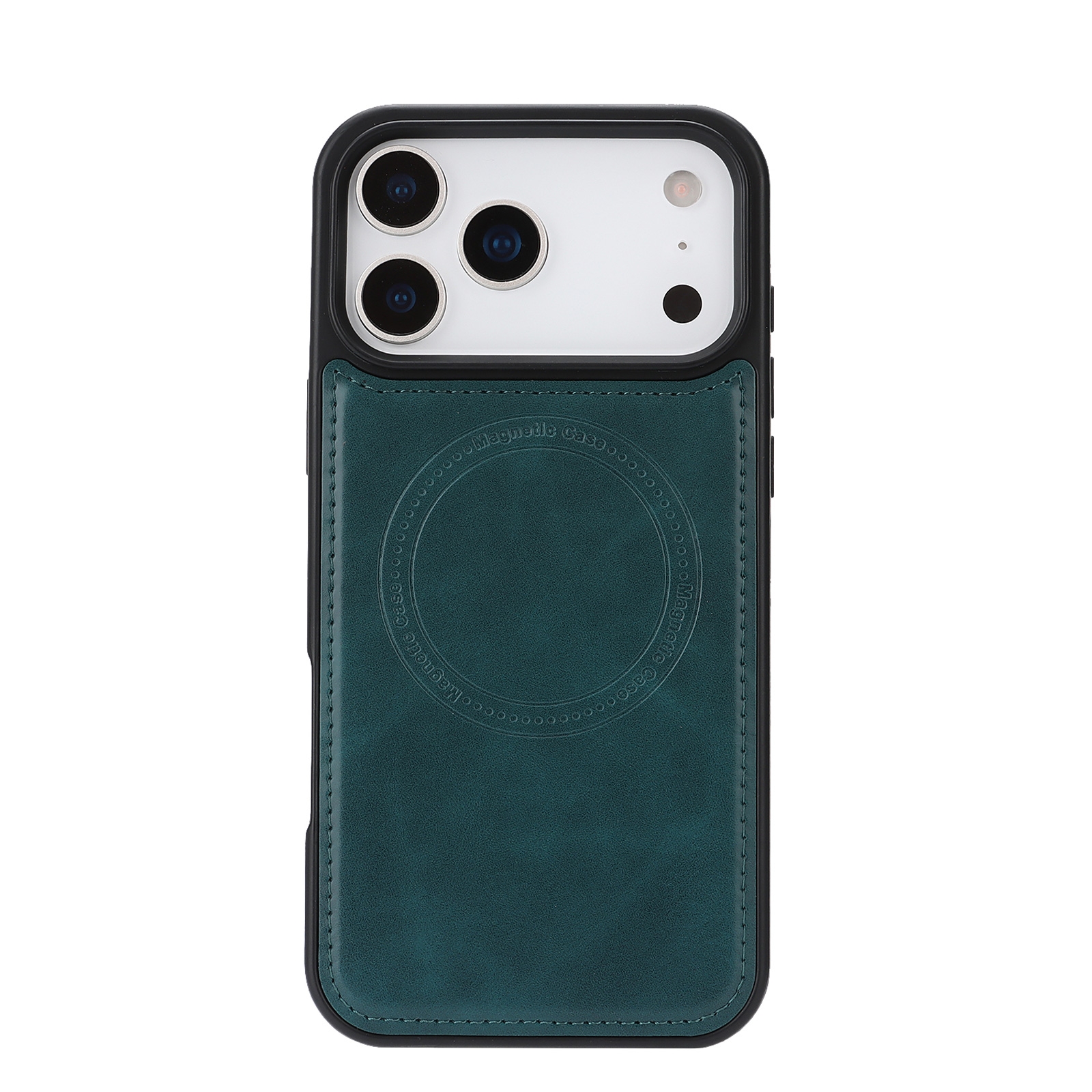 iPhone 17 Pro Magnetic Case – Dark Green PU Leather Design