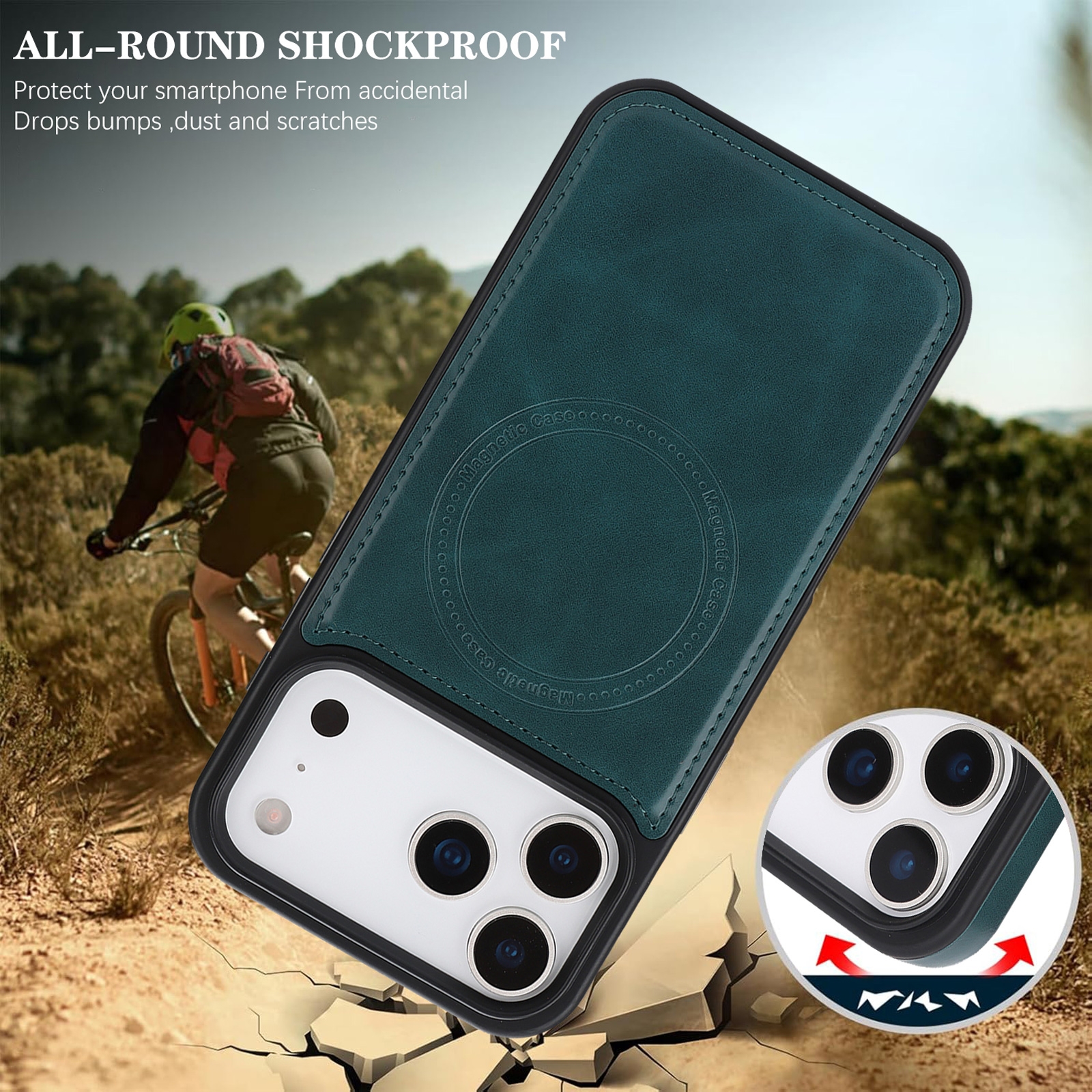 iPhone 17 Pro Magnetic Case - Vegan Leather Shockproof MagSafe Cover Dark Green