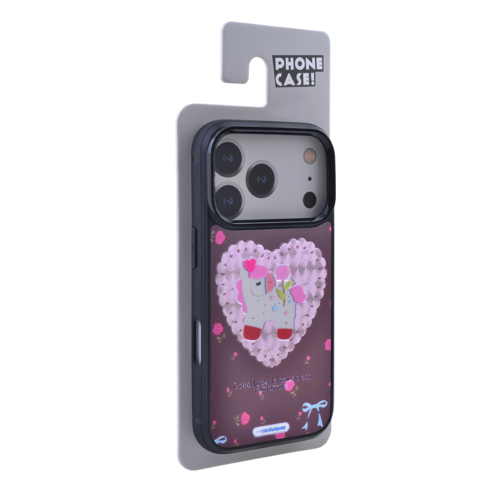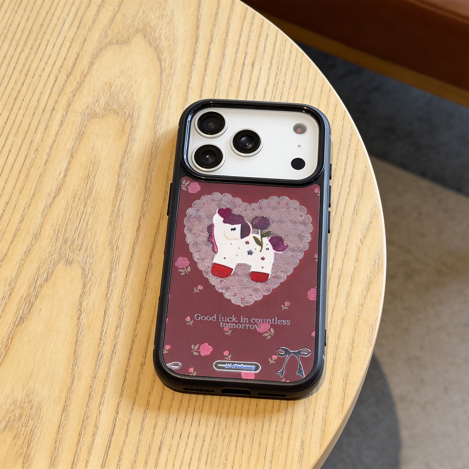 iPhone 17 Pro Magnetic Sparkly Unicorn Heart Case - Maroon Rose Print Cover