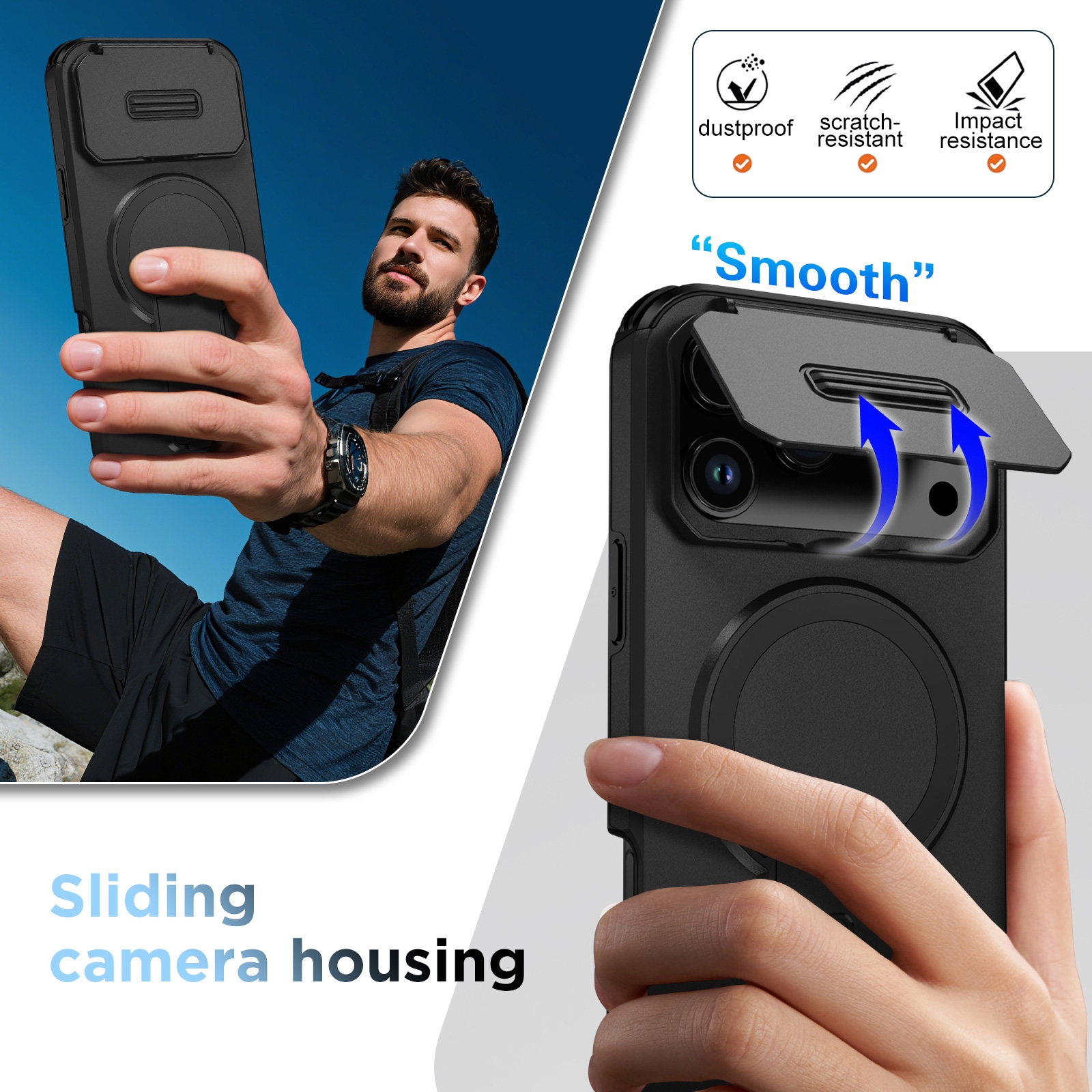 360 Rotation Kickstand Magnetic iPhone 17 Pro Max Case - Airbag Shockproof Metal Stand, Black