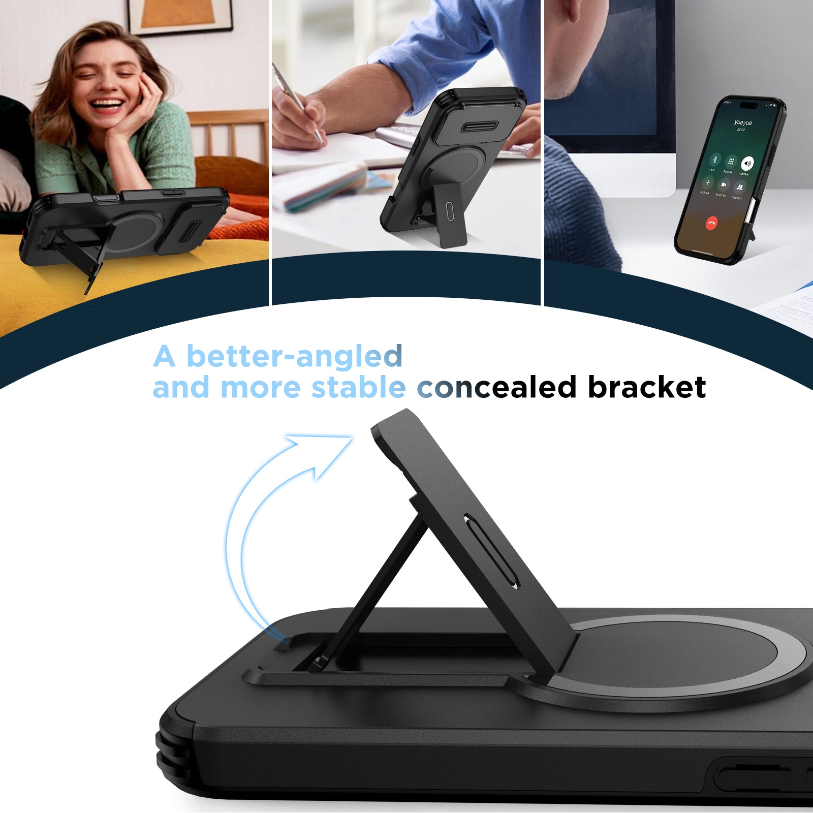 iPhone 17 Pro Max Hidden Kickstand Armor Design Protective Case, Black