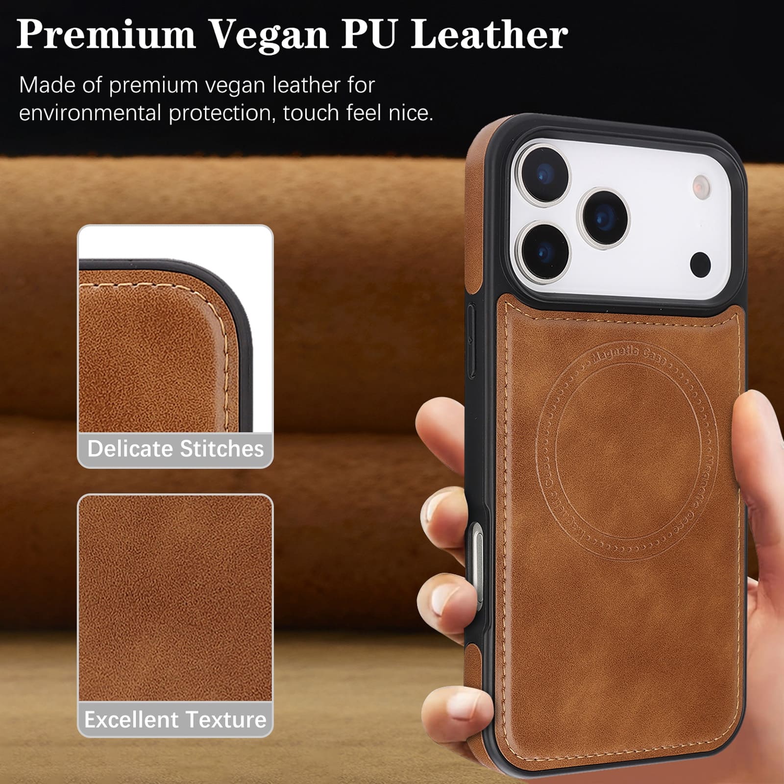 iPhone 17 Pro Max Magnetic Case – Vegan Leather Shockproof MagSafe Cover Light Brown