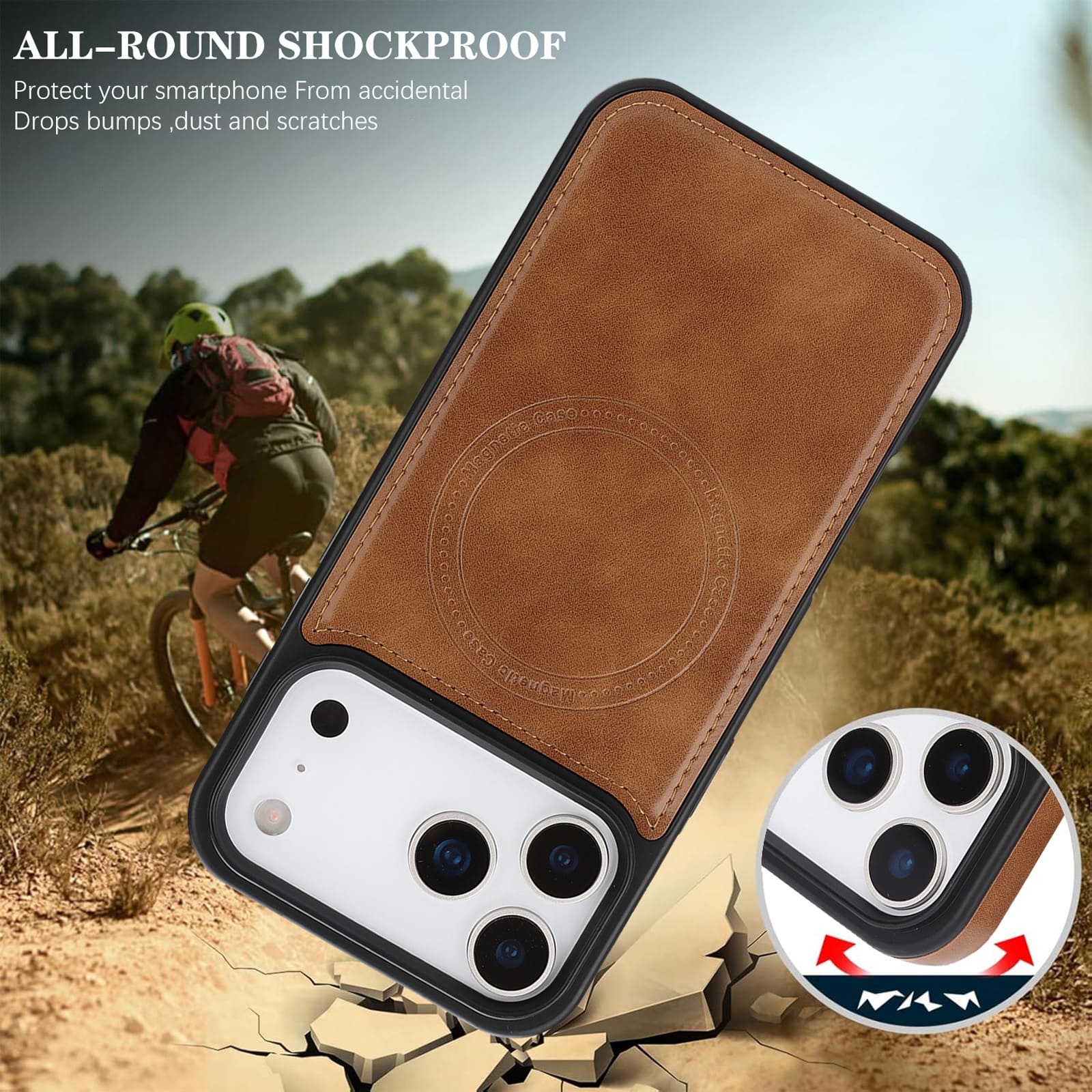 iPhone 17 Pro Max Magnetic Case Black – Vegan Leather Shockproof MagSafe Cover Brown