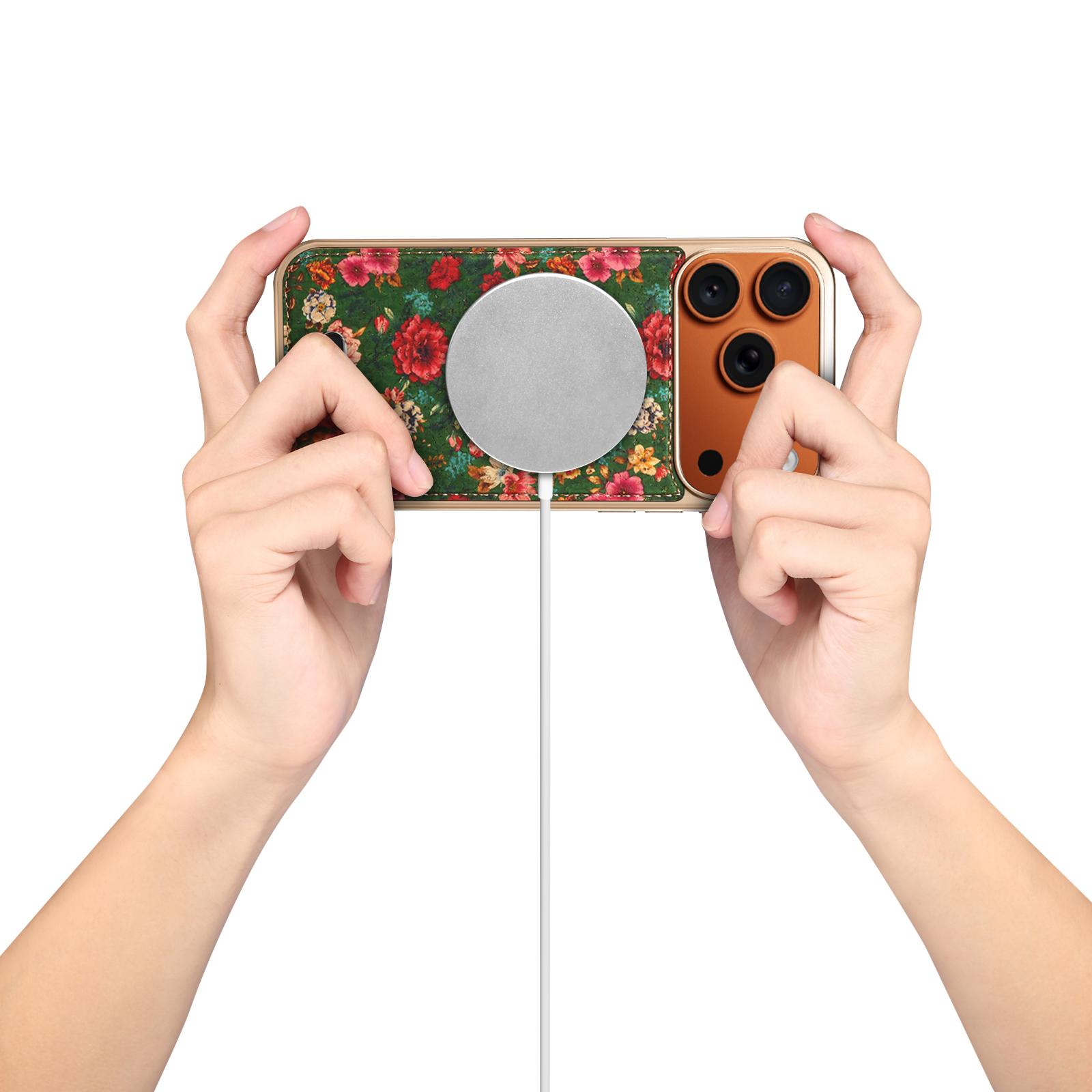 Printed Magnetic Detachable Electroplated Case for iPhone 17 Pro, Peony Green