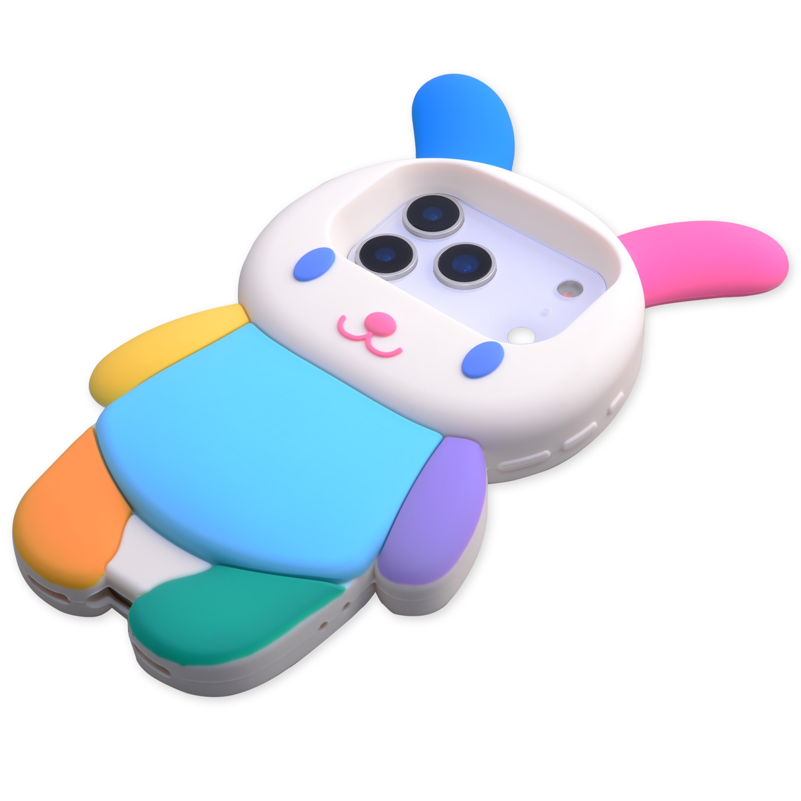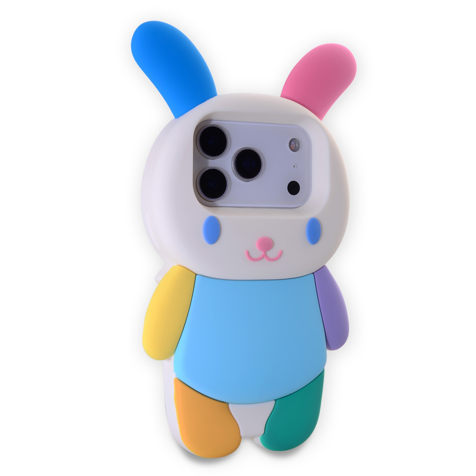 iPhone 17 Pro Rabbit Silicone Protective Phone Case – Rainbow Color