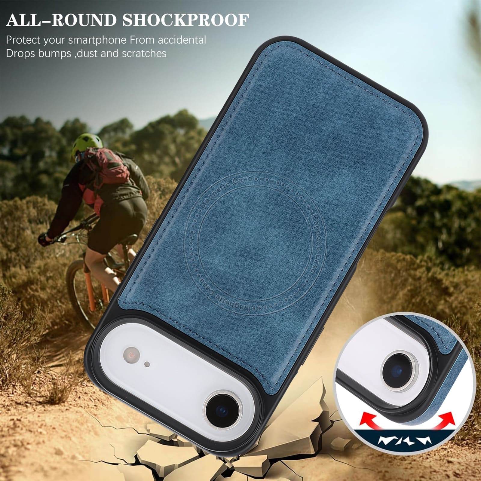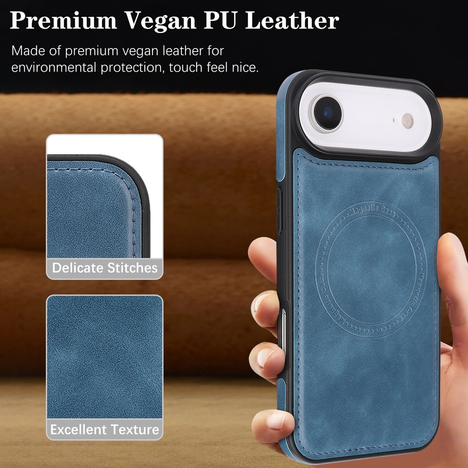 iPhone Air Magnetic Case – Vegan Leather Shockproof MagSafe Cover Blue