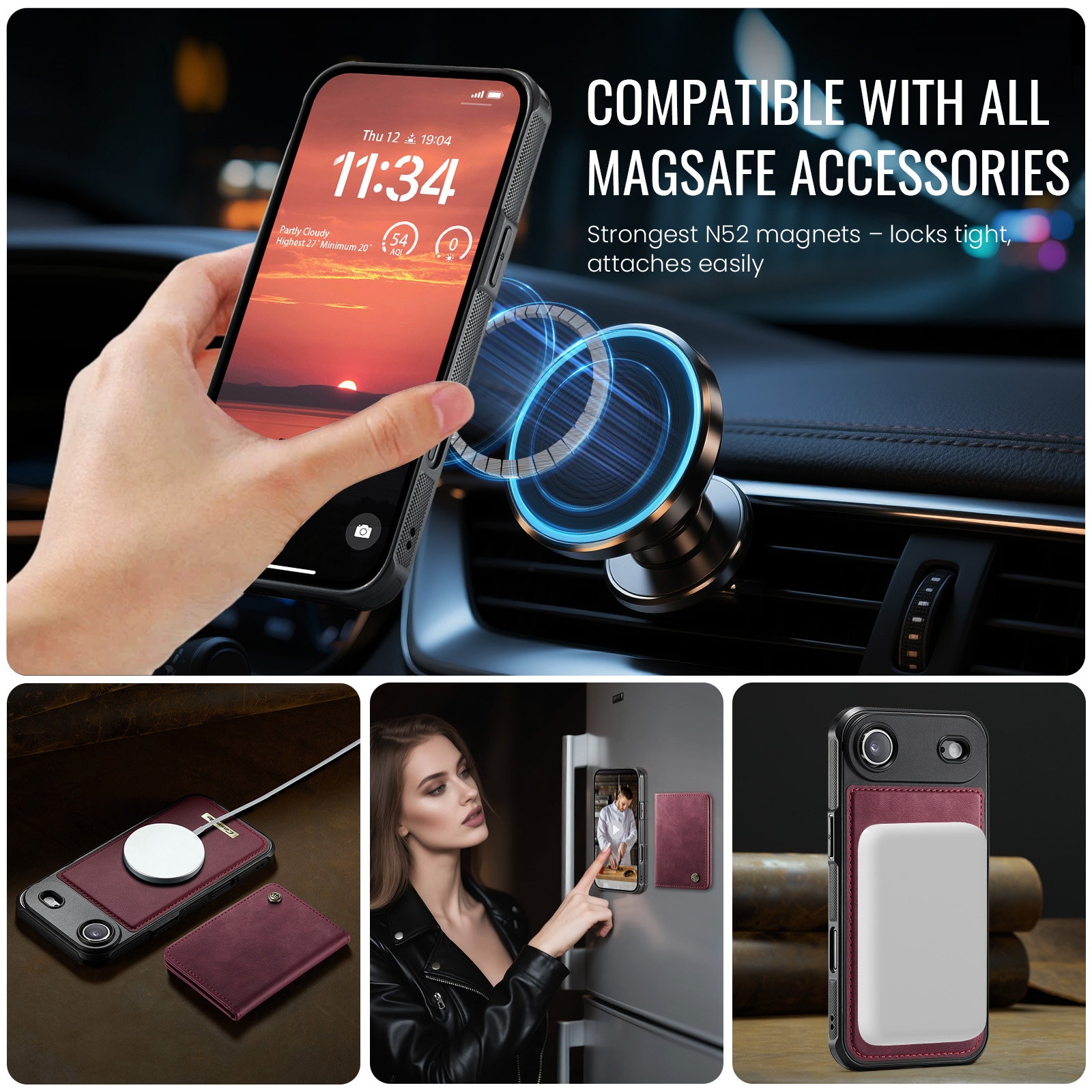 iPhone Air Magnetic Case with Card Holders, Red