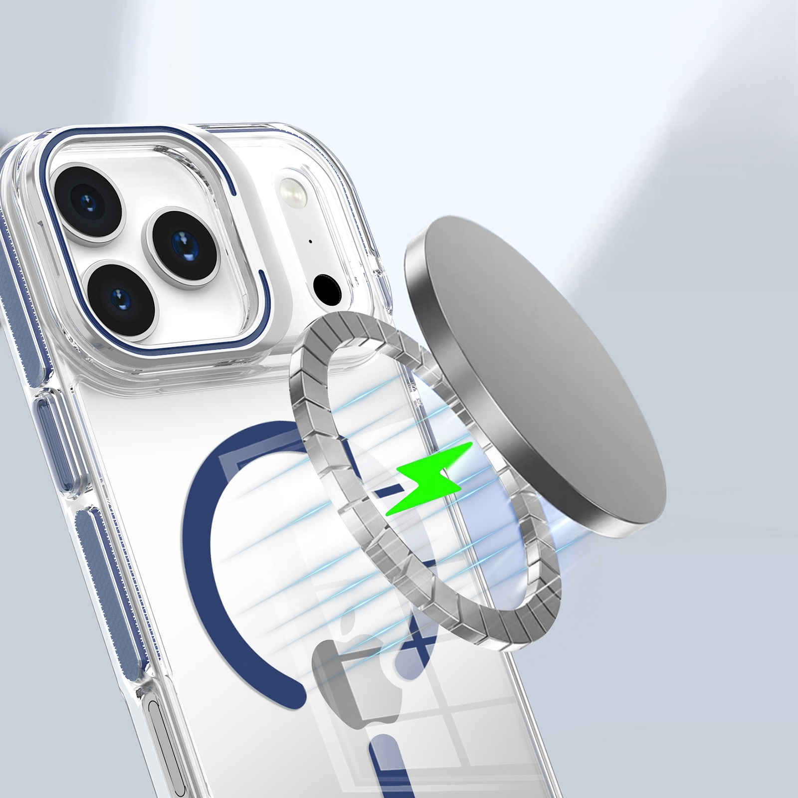 iPhone Air Magnetic Case with External Lens Cover, Dark Blue
