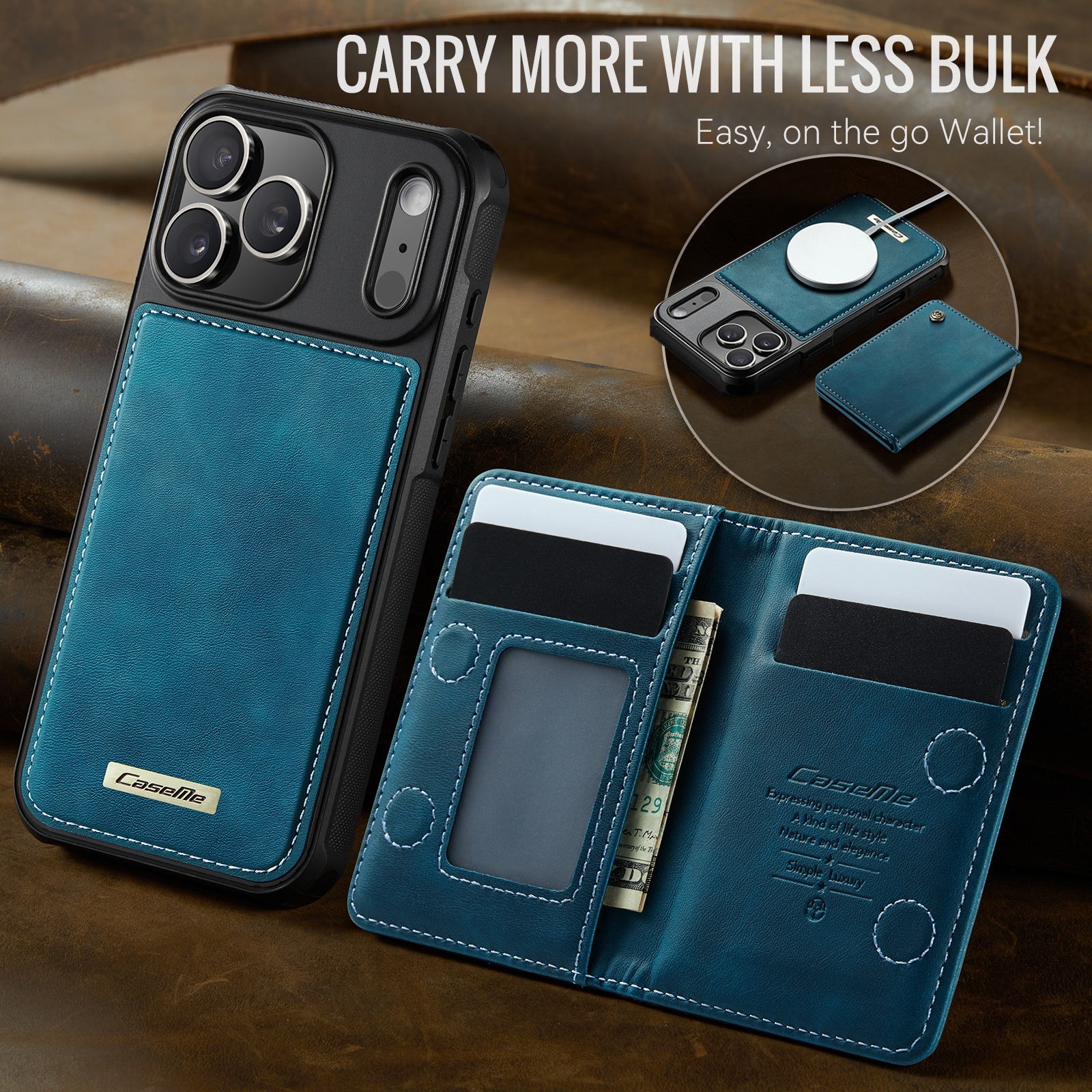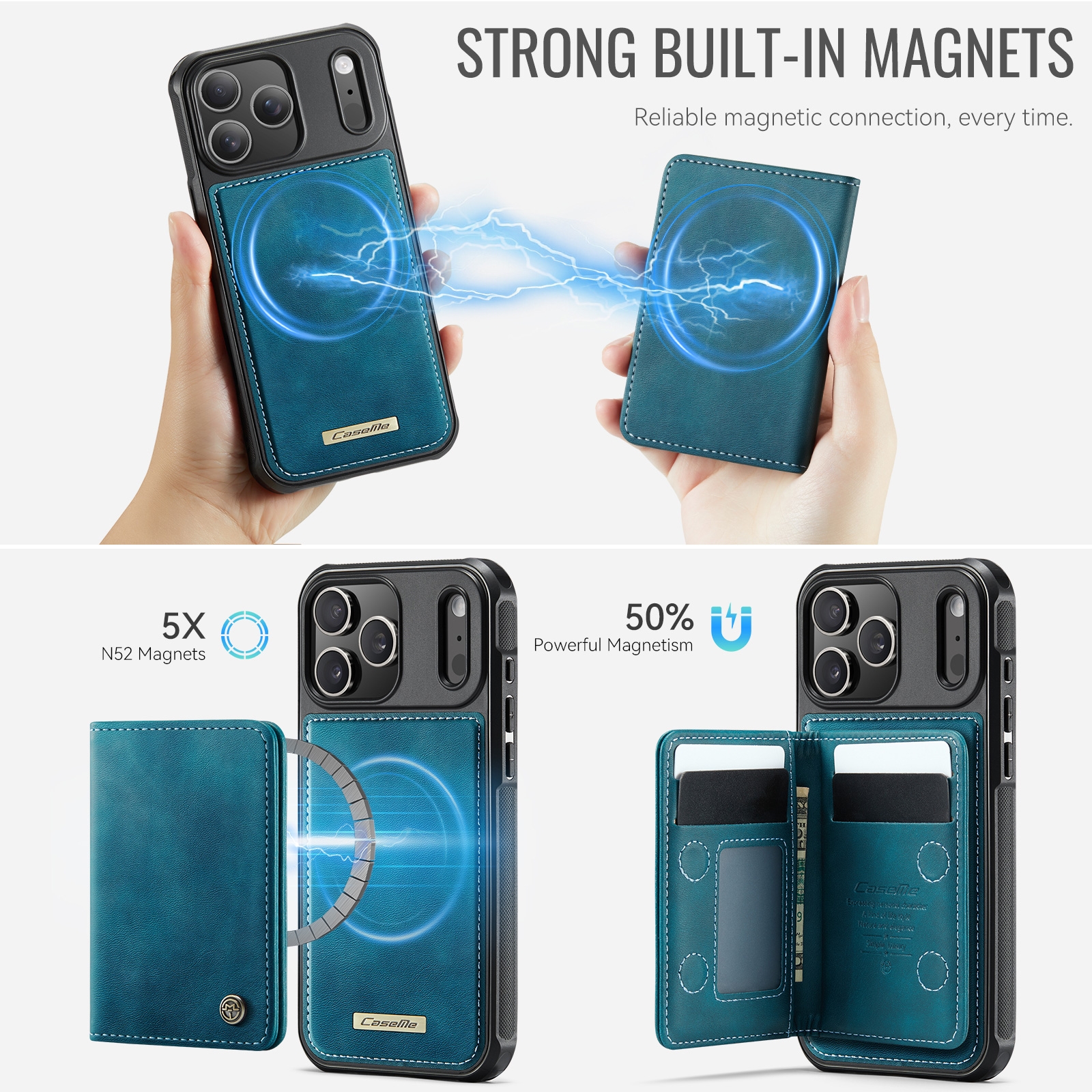 iPhone 17 Pro Max Magnetic Case with Card Holders, Blue