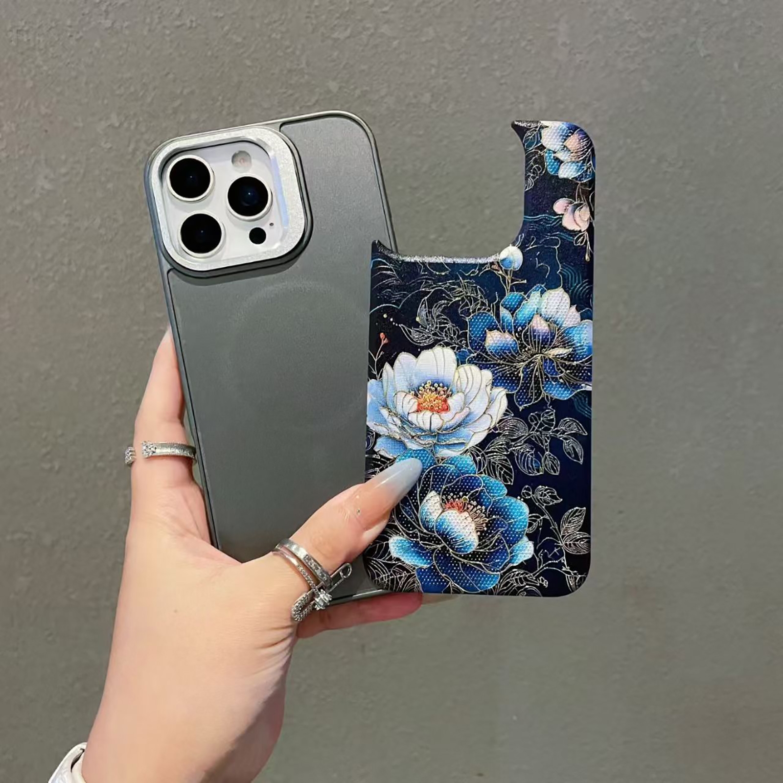 - Detachable Black Gold Gilded Peony Back Cover - Customizable design with black background and gold gilded peony pattern.