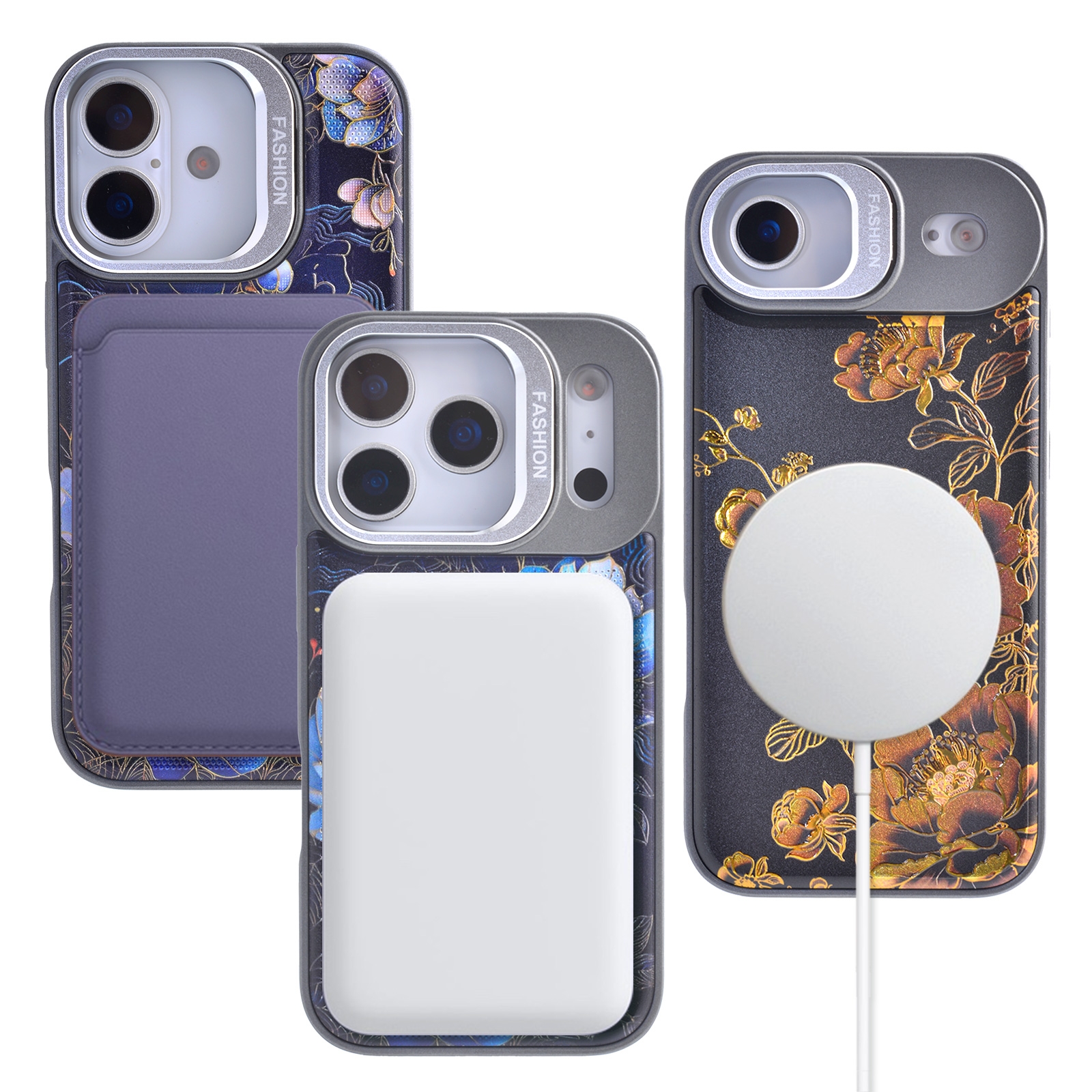 iPhone17 Pro Max Blue Background Gilded Floral Magnetic Case, Blue