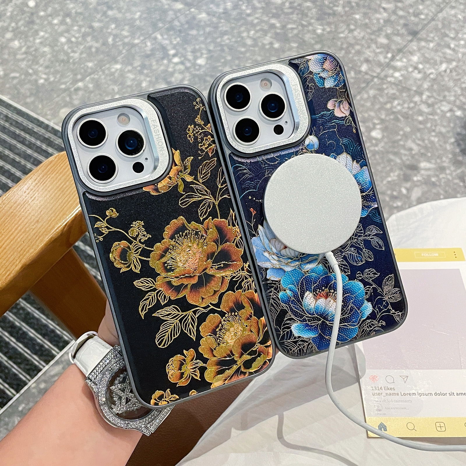 iPhone 17 Pro Max Black Gold Gilded Peony Magnetic Case - Detachable Gold Gilded Peony Cover