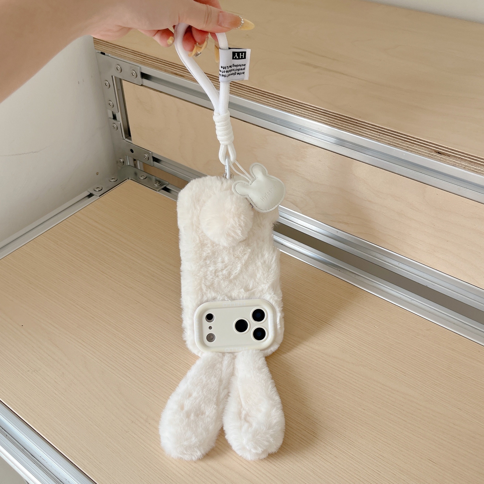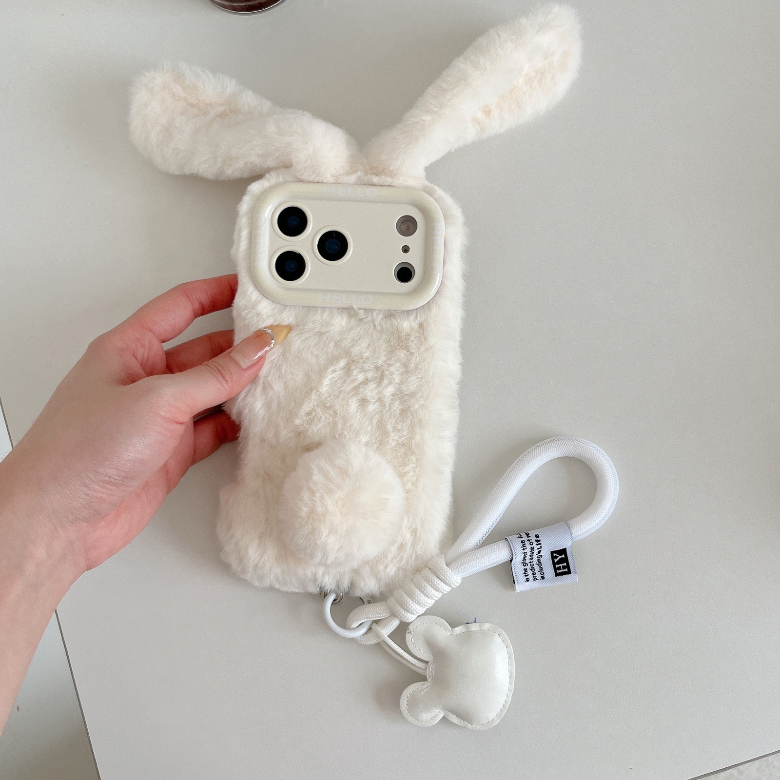 Rabbit Phone Case for iPhone 17 Pro – Beige Plush Design