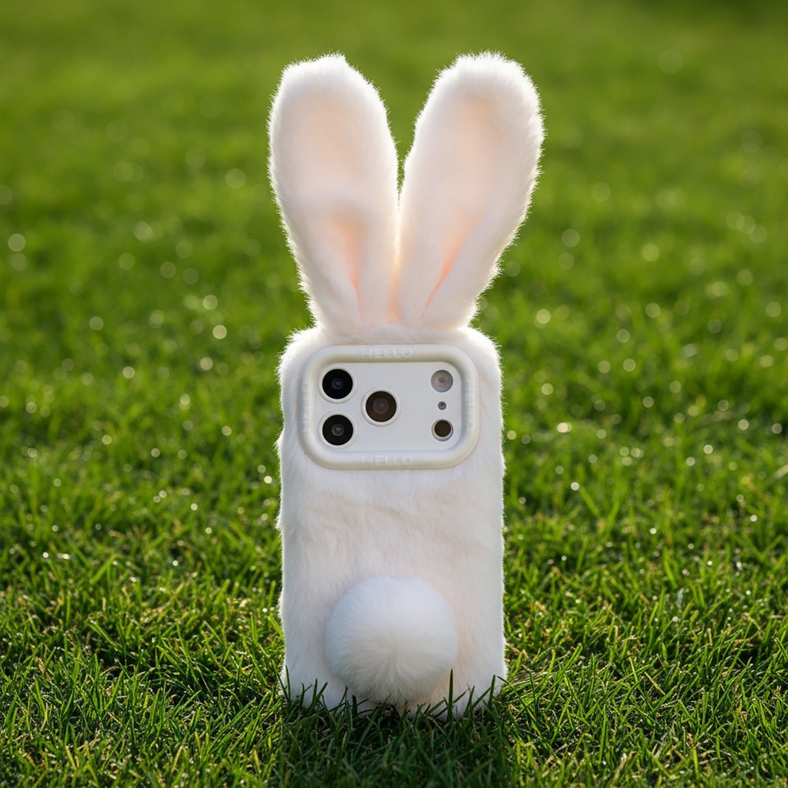 - Soft Plush Exterior: Covered in beige fuzzy material resembling rabbit fur, with ears and a tail accent.
